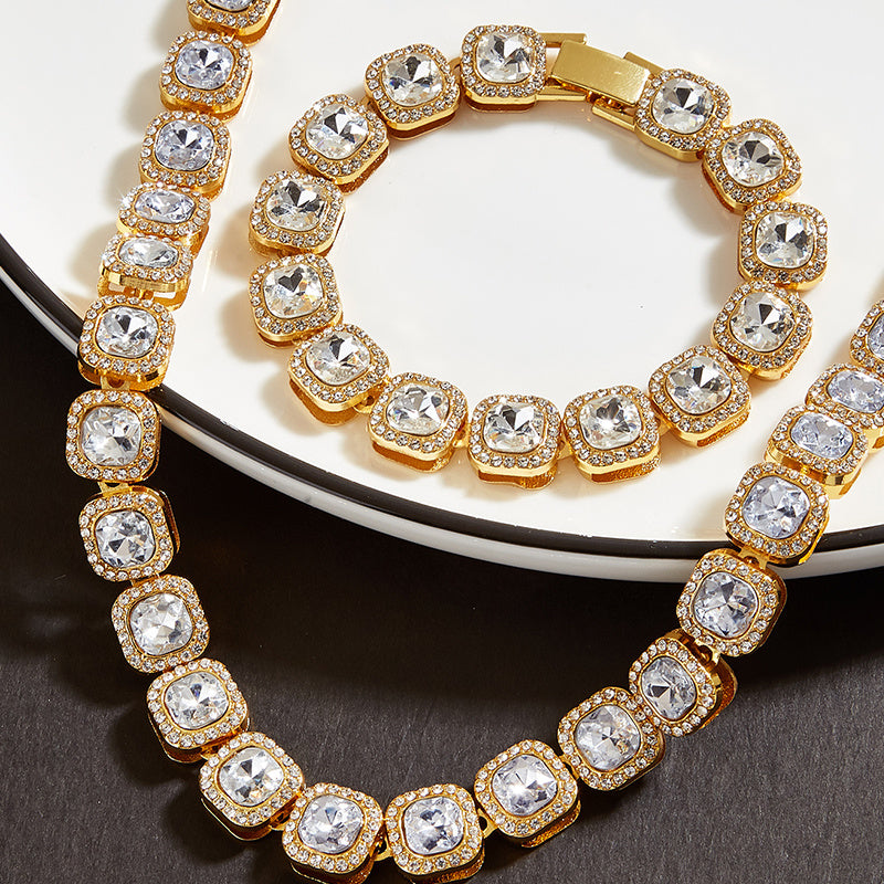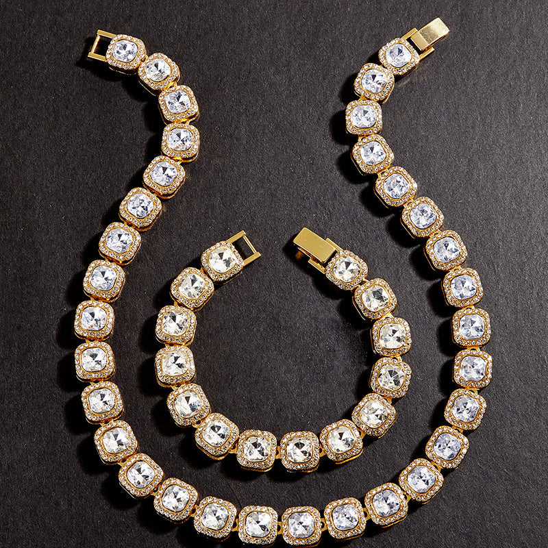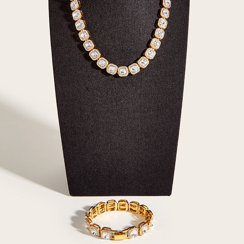 Enhance your style with this stunning 2-piece men's golden necklace and bracelet set. It adds a touch of luxury to any outfit.
