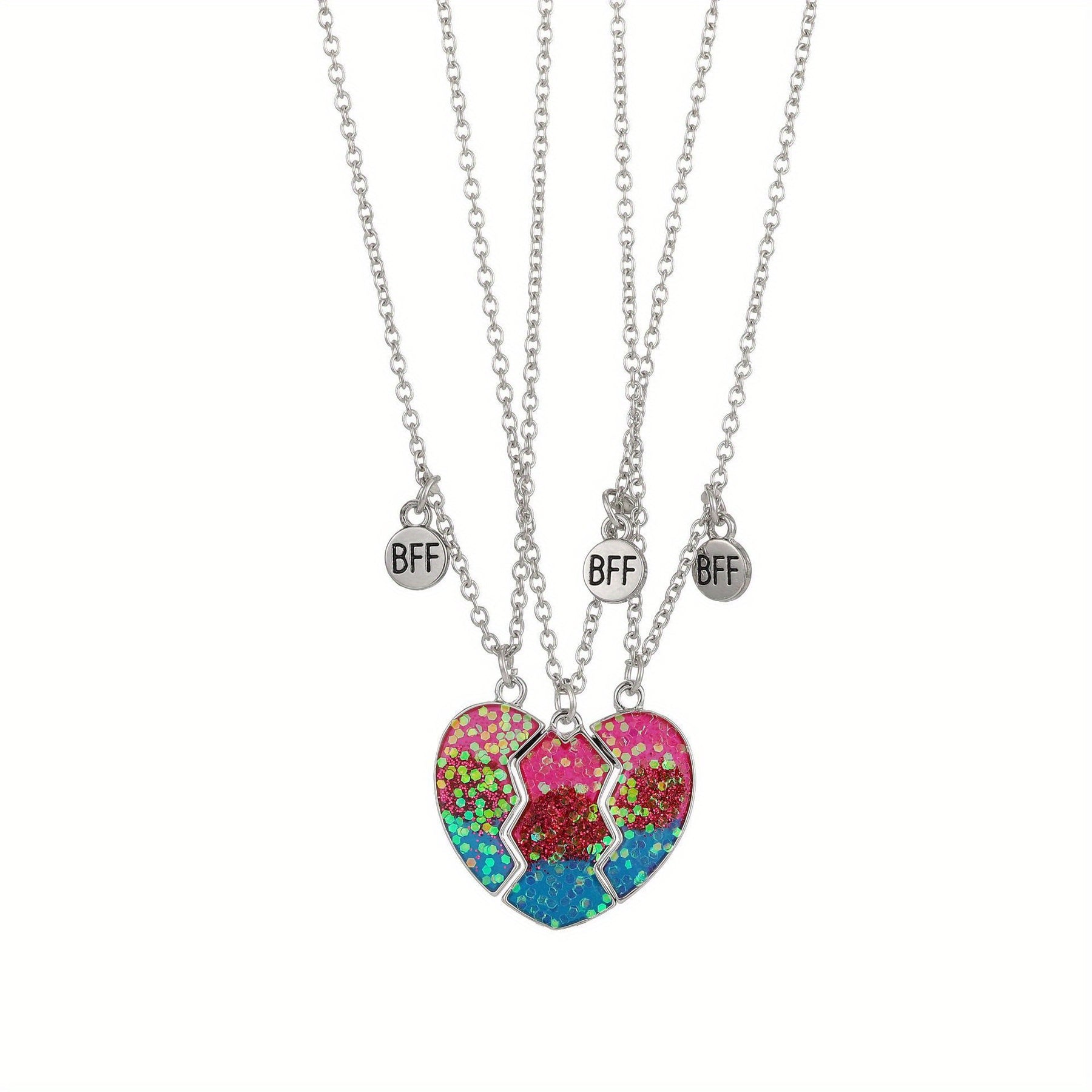 Show your best friend trio some love with this 3-piece set of peach heart pendant necklaces. Each necklace features a broken heart design, symbolizing your unbreakable bond and friendship.