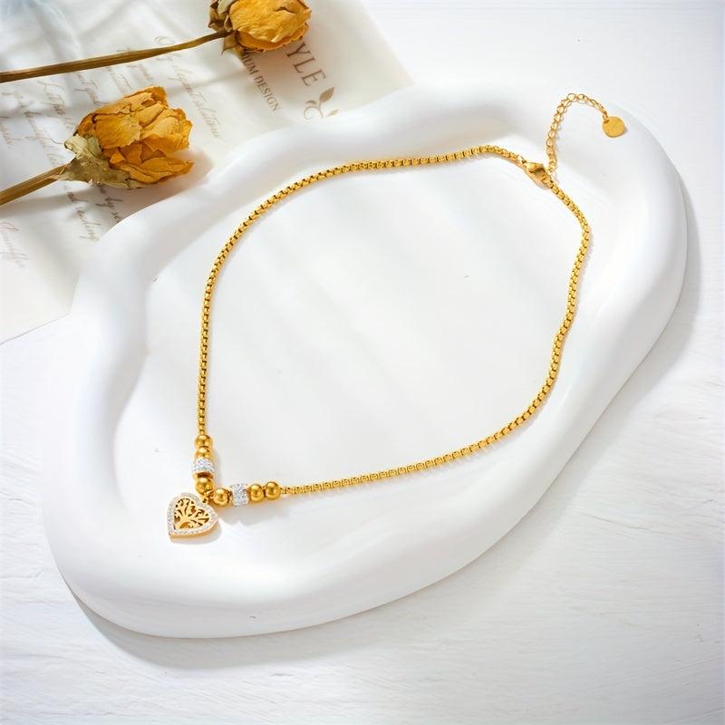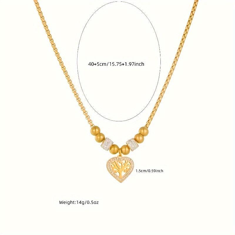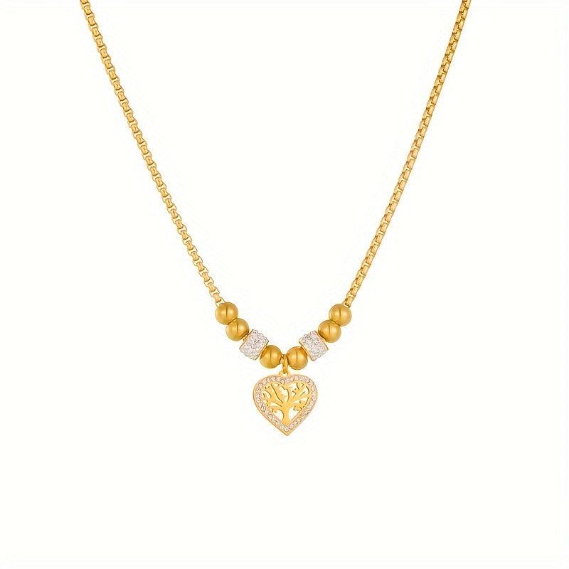 Add a touch of elegance to your party outfit with this stunning 304 stainless steel necklace featuring a heart tree of life pendant accented with rhinestones on a beaded chain.