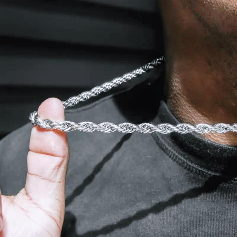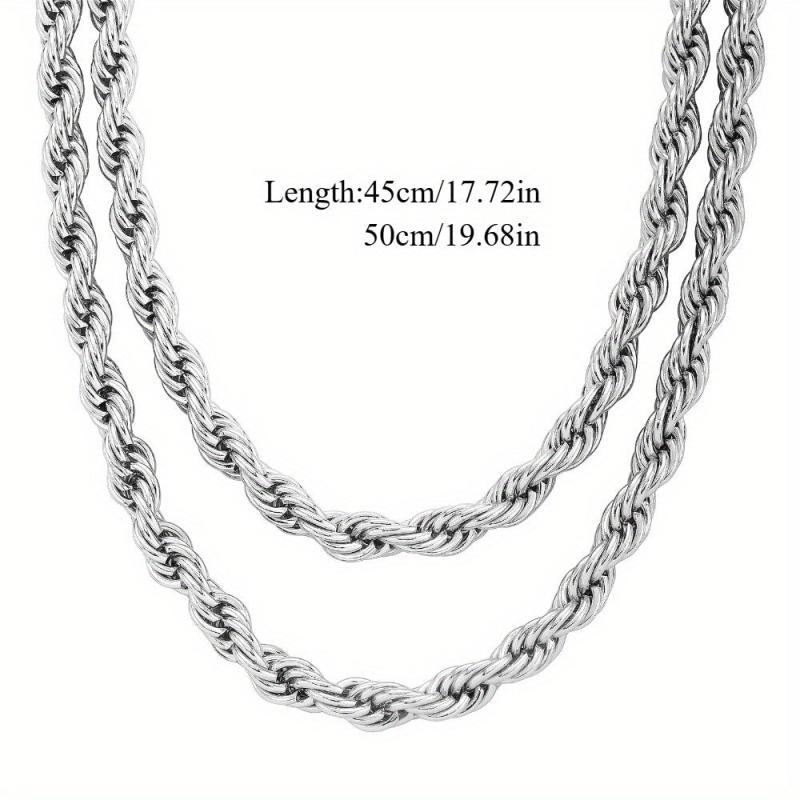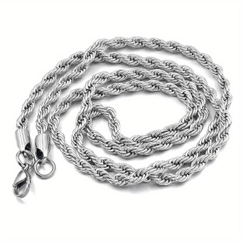 Elevate your style with this funky braided stainless steel necklace. Hypoallergenic and durable, this twisted rope chain is perfect for men and women who want a stackable layered jewelry look.