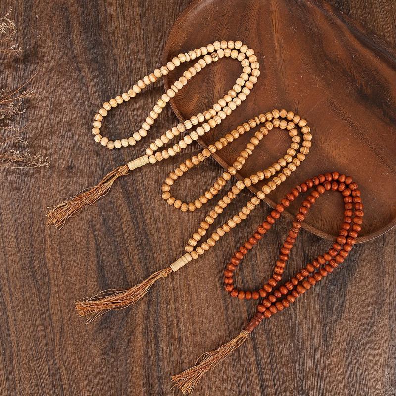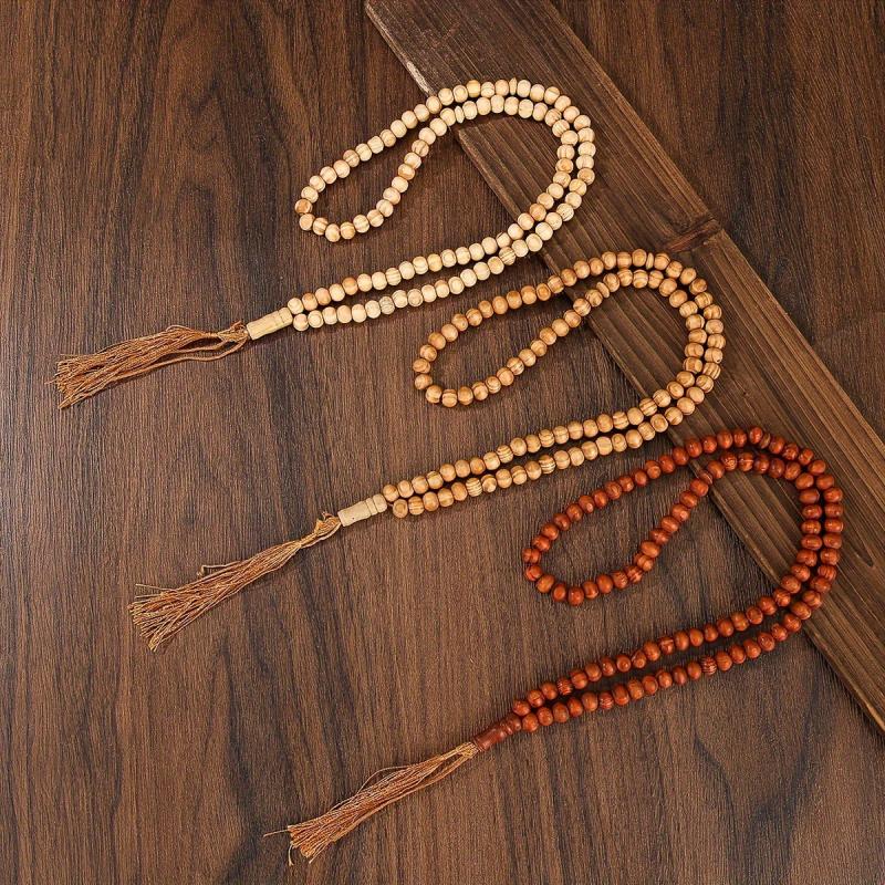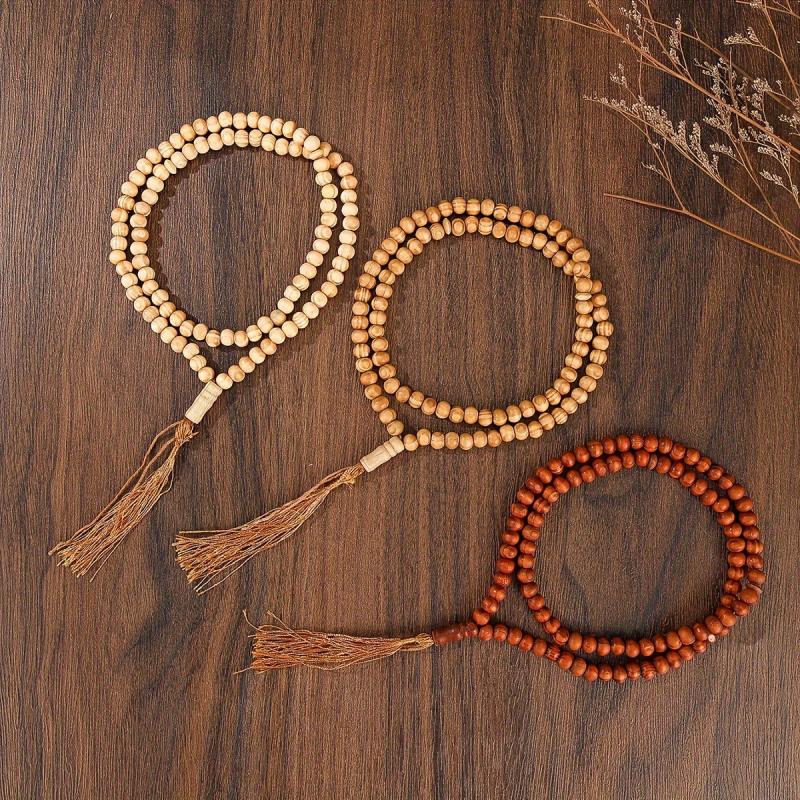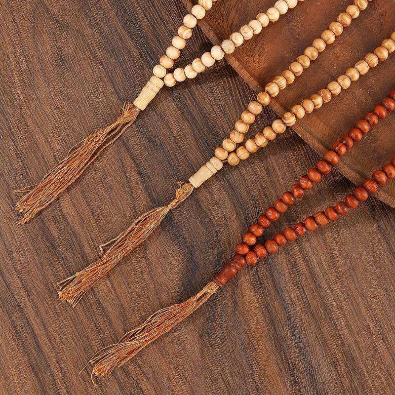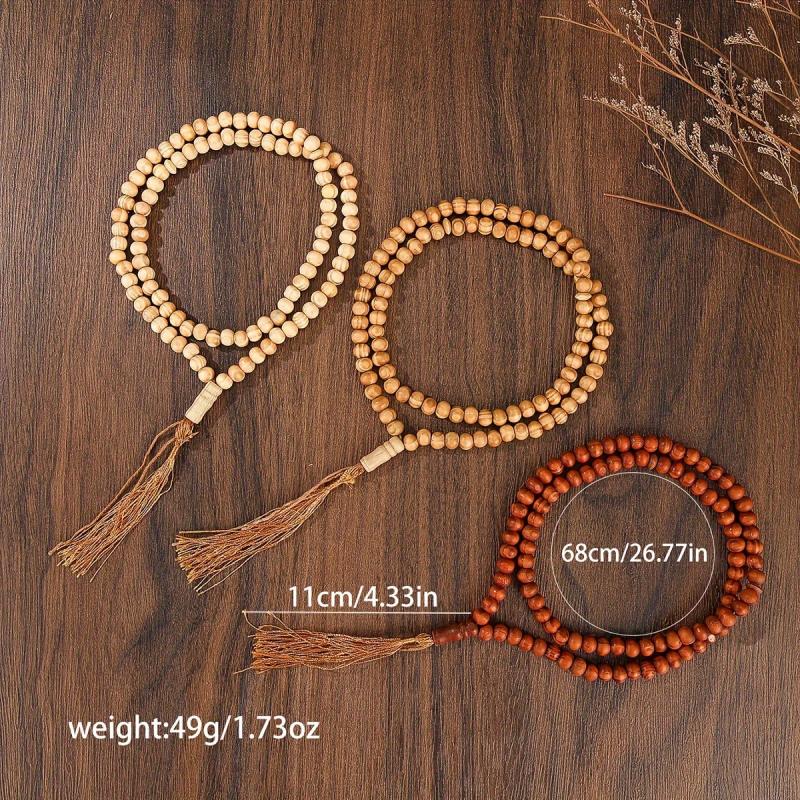 Enhance your bohemian look with this set of 3 wooden bead necklaces featuring a single layer design. Perfect for adding a touch of ethnic charm to your outfit.