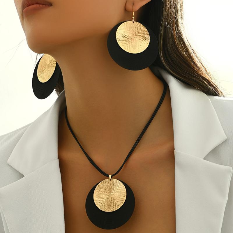 Complete your outfit with this trendy jewelry set featuring a unique cutout design. Perfect for adding a touch of glam to any look.