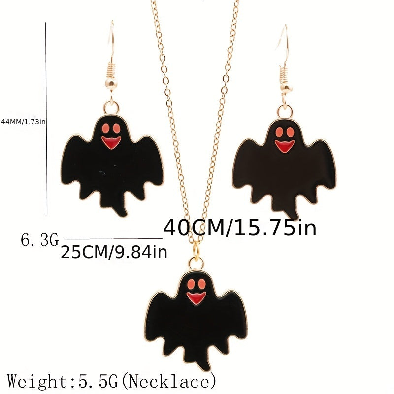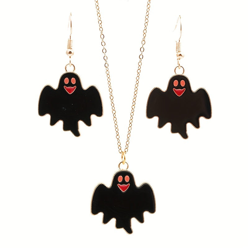 3pcs Halloween Jewelry Set - Funny Ghost Pendant Earrings Plus Necklace
