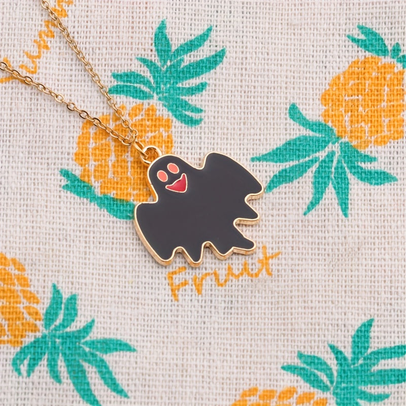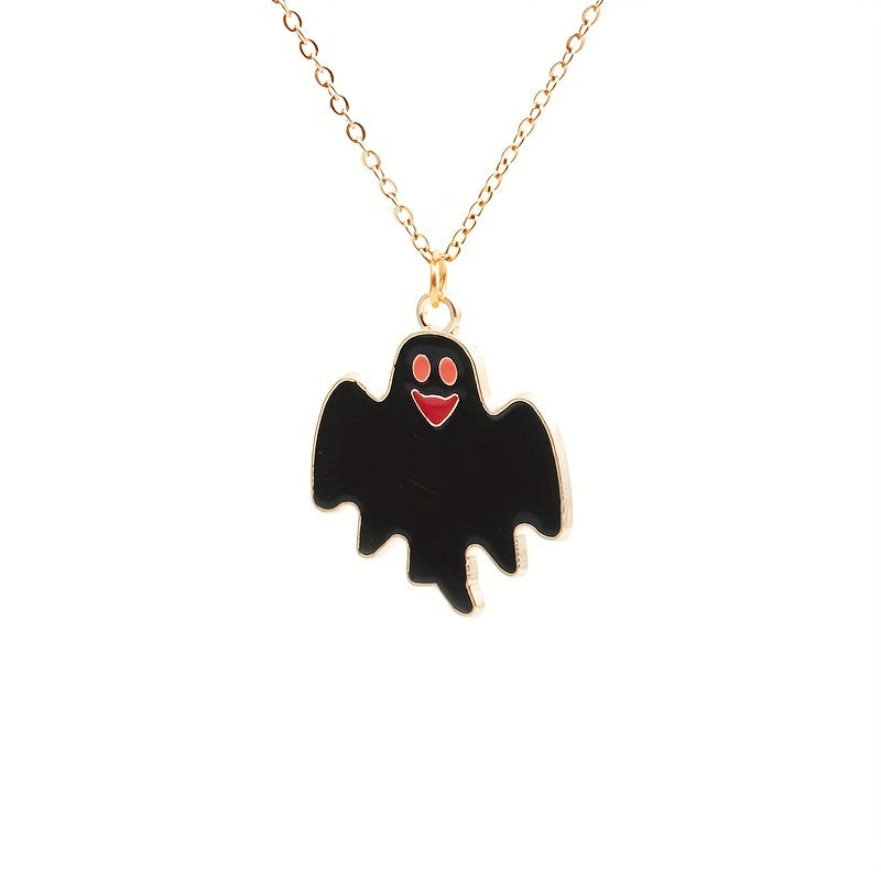Complete your Halloween look with this set including a funny ghost pendant necklace and earrings. Perfect for adding a touch of spooky style to your daily outfits.