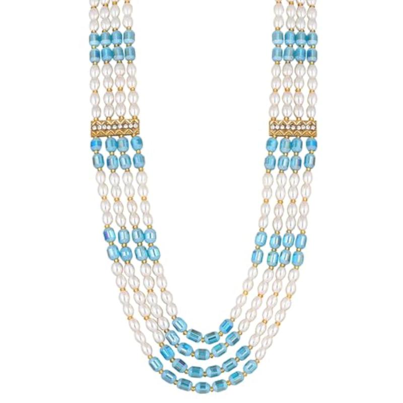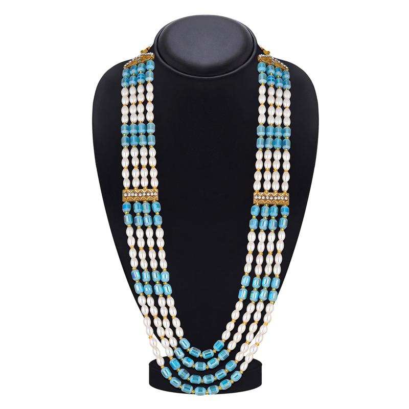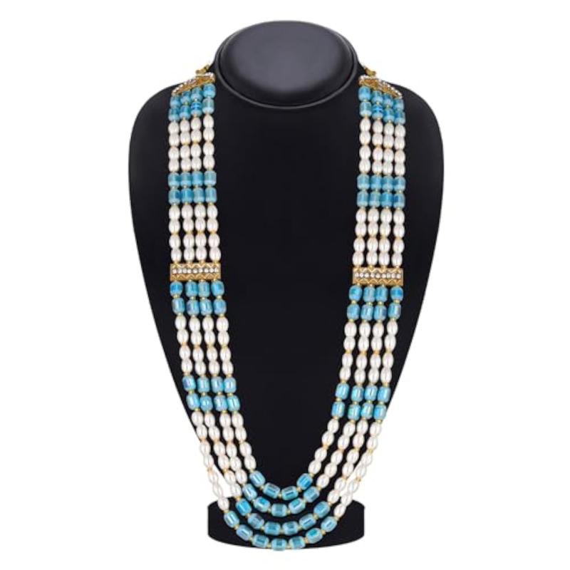 Elegant 4-layer groom mala necklace with artificial beads base and moti haar design. Perfect for weddings and special occasions.
