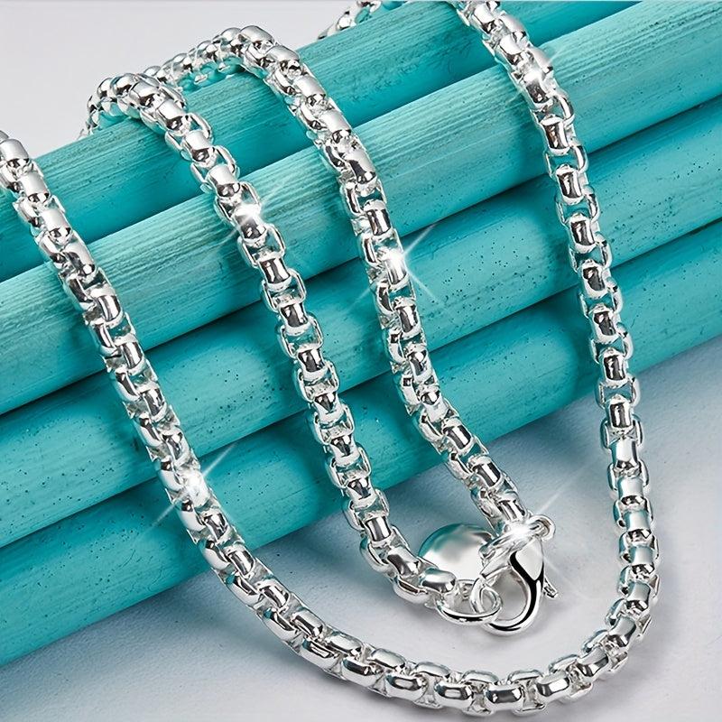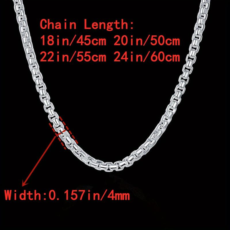 Add a touch of funky style to your look with this 4mm box chain necklace. Made of 925 sterling silver plated, this unisex jewelry piece makes a perfect gift for both men and women.