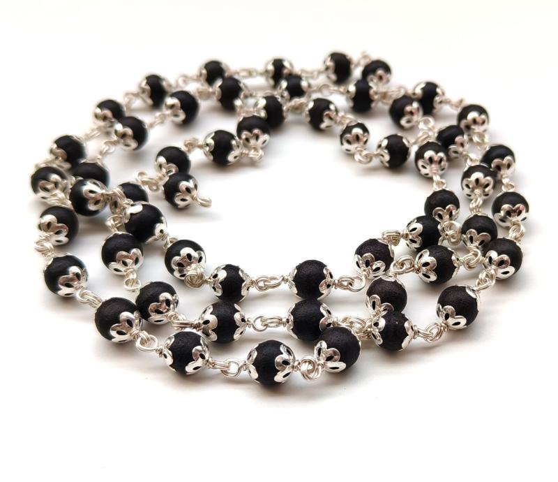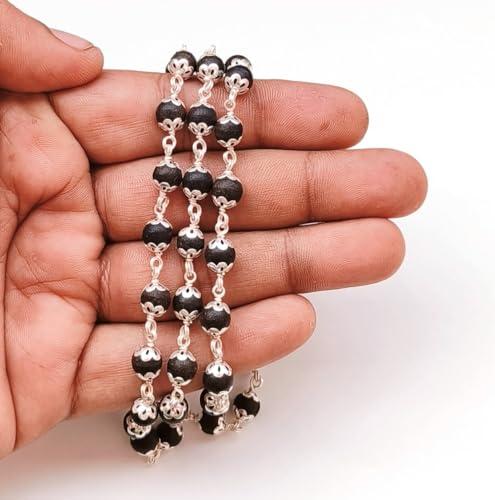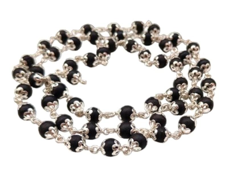 This traditional 54+1 beads Karungali Malai is crafted with a German Silver cap and features beads with a size of 8mm. Perfect for religious and spiritual practices.