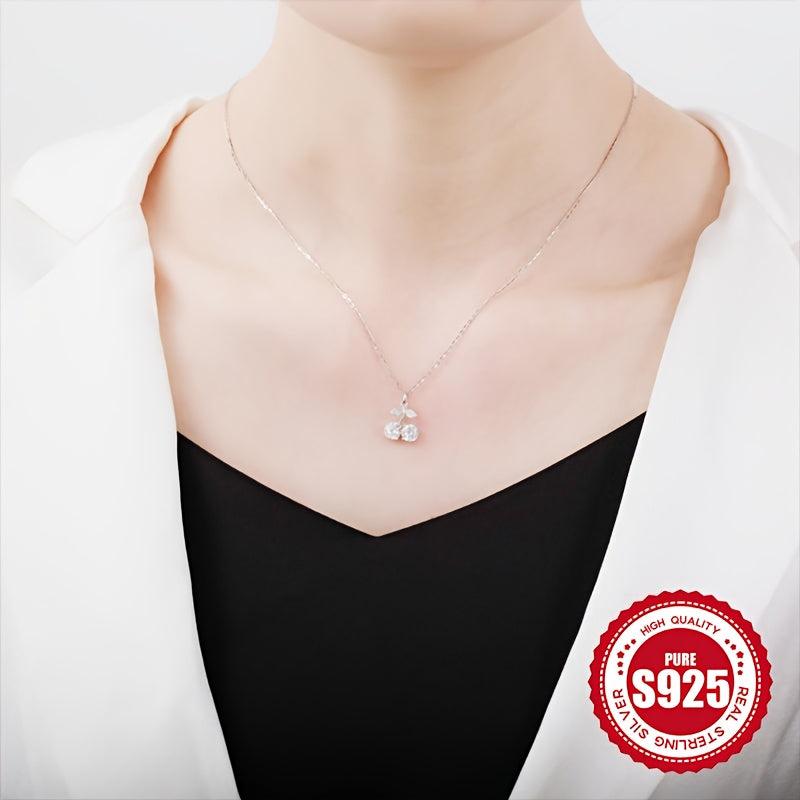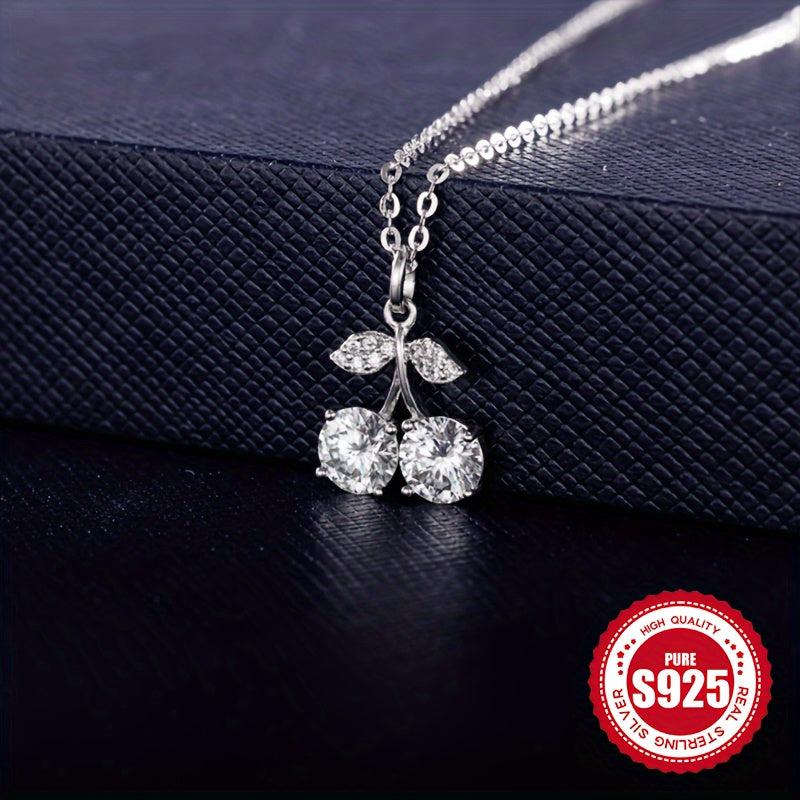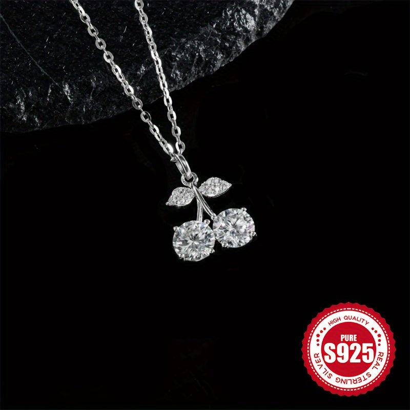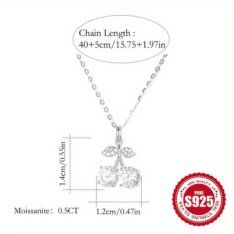 Add sparkle to your look with this stunning 5ct Moissanite pendant necklace. Made with 925 sterling silver, this necklace features a small cherry pendant that is perfect for women as a jewelry accessory.