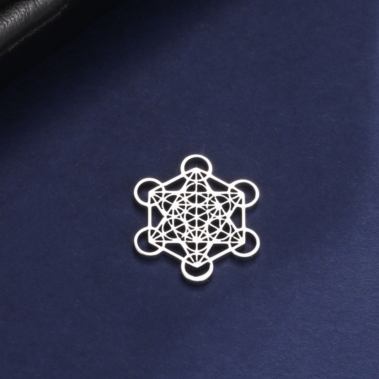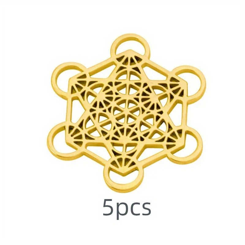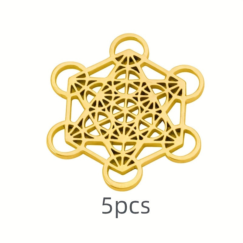 Enhance your style with these 5pcs Metatron Cube charms made of stainless steel. Perfect for necklaces and jewelry accessories.