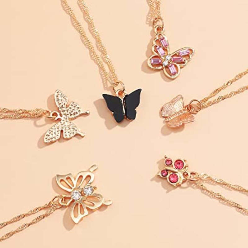 This plated combo features 6 elegant butterfly necklaces that add a touch of charm to any outfit.