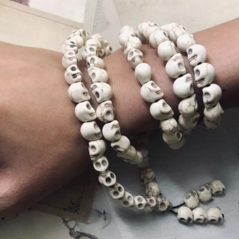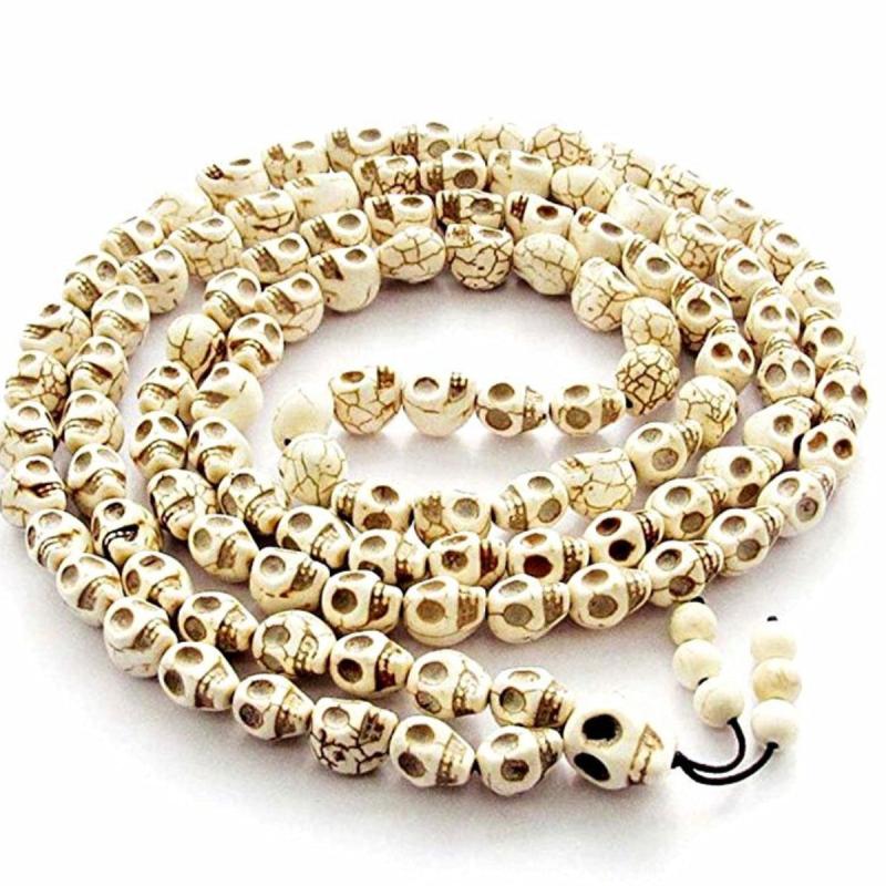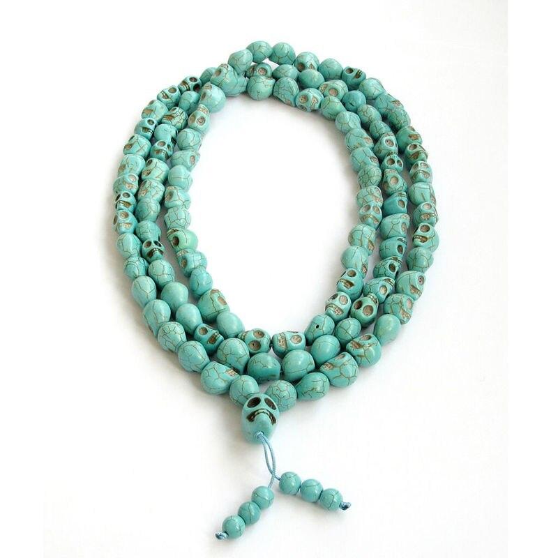 Get a stylish and edgy look with this punk necklace featuring 6mm stone beads and 108 skull beads. Perfect for both men and women.
