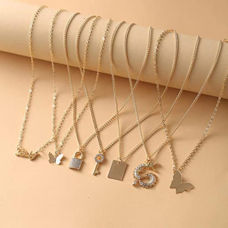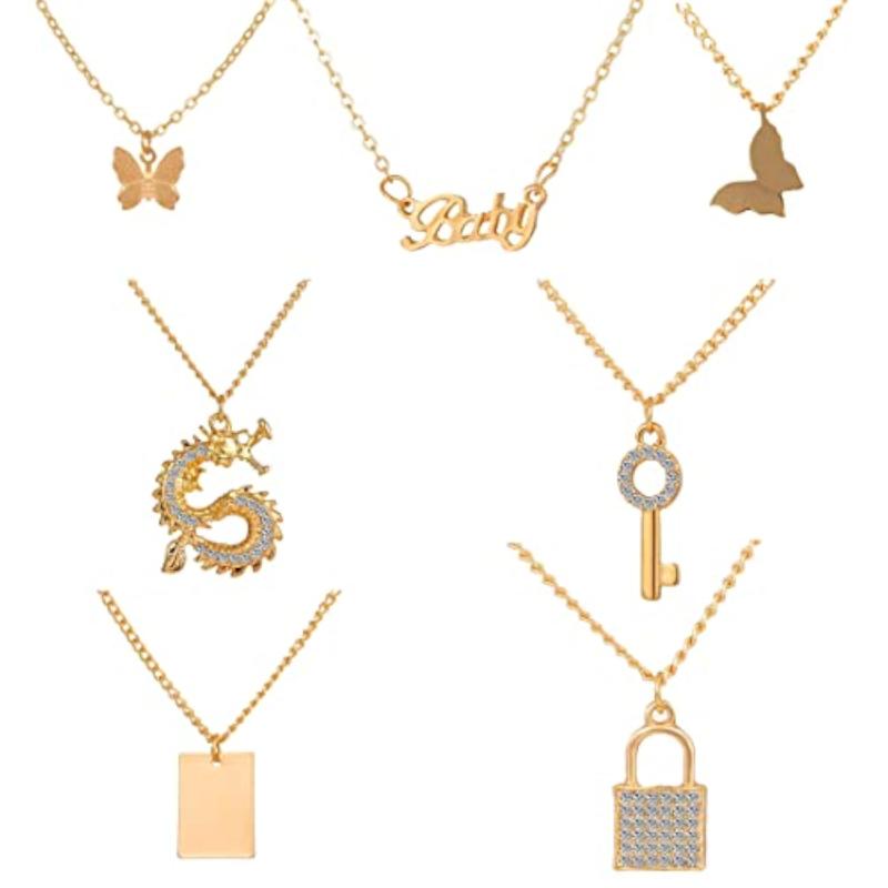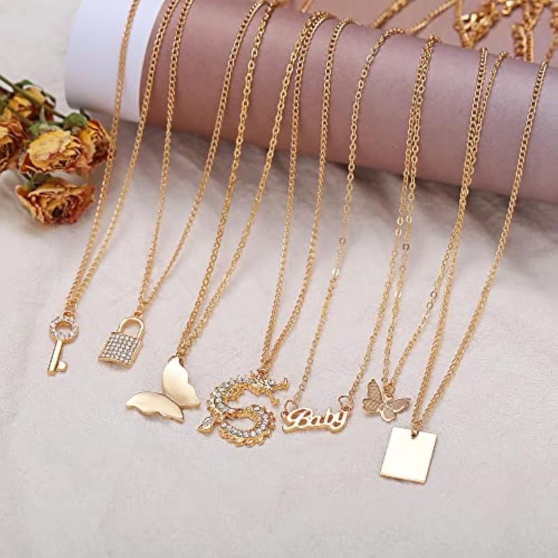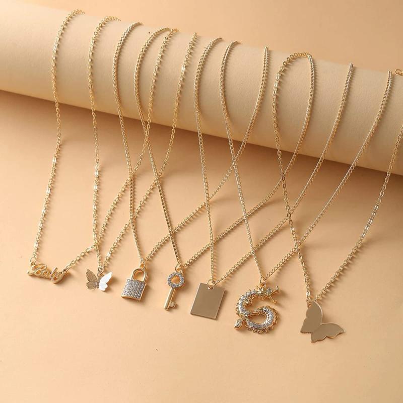 Elevate your look with this versatile combo of 7 necklaces, featuring a mix of plated and toned finishes. Perfect for layering or wearing individually.