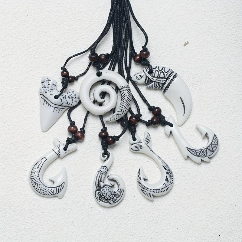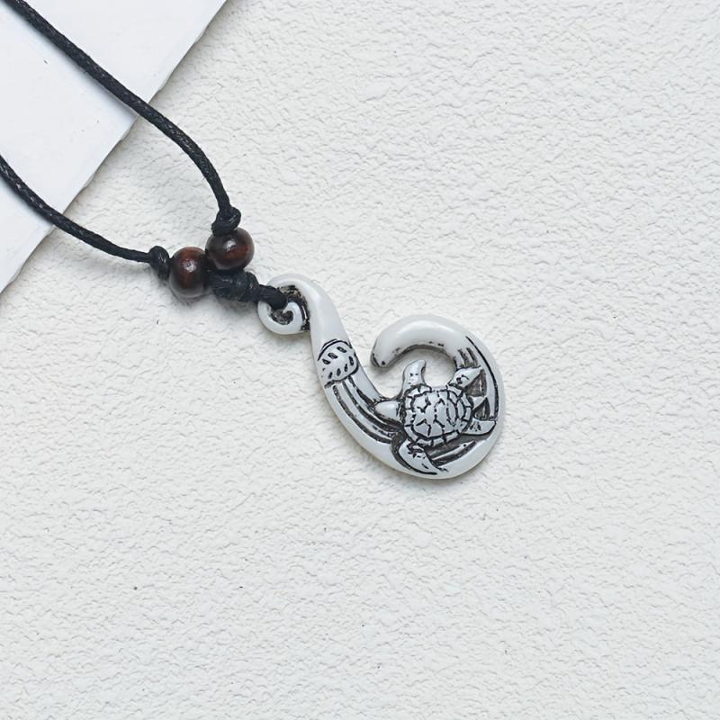 This pendant necklace set is perfect for daily wear, featuring a vintage fish hook design with resin material. The adjustable retractable rope adds a touch of vacation style to your outfit.