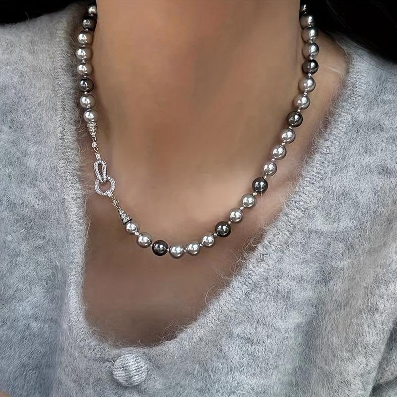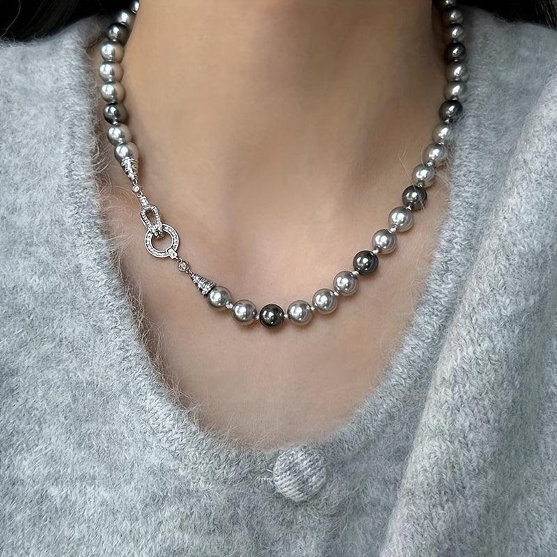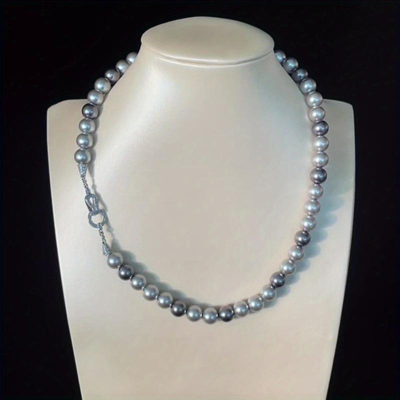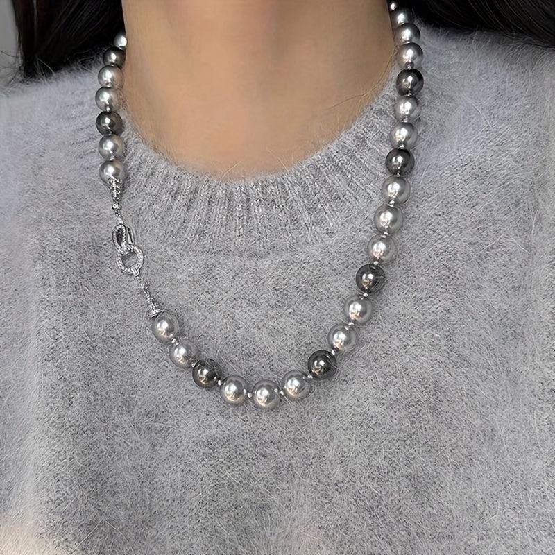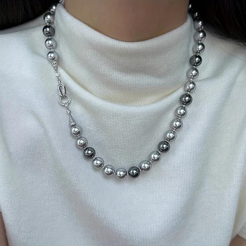 Elevate your look with this 8mm gray mixed pearl necklace. Perfect for daily wear or as a gift on Valentine's Day, this high-end sweater chain adds a touch of elegance to any outfit.
