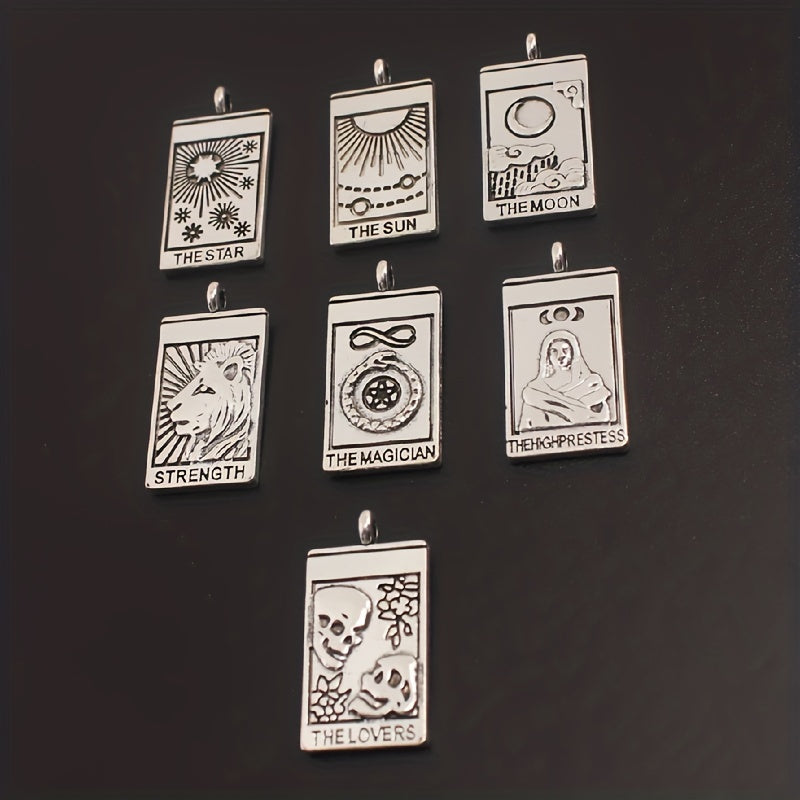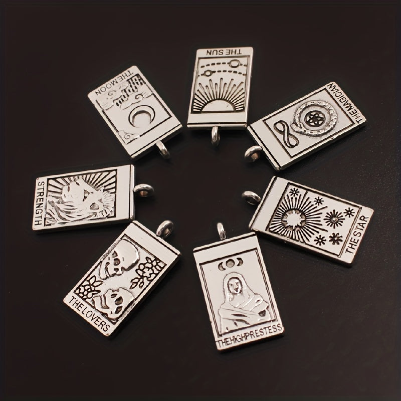 8pcs Silver Plated Witch Divination Tarot Pendant Set DIY Jewelry Making