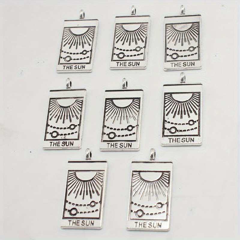 Create stunning necklaces and earrings with this set of double-sided tarot card shape pendants. The silver-plated alloy design adds a touch of elegance to your jewelry creations.