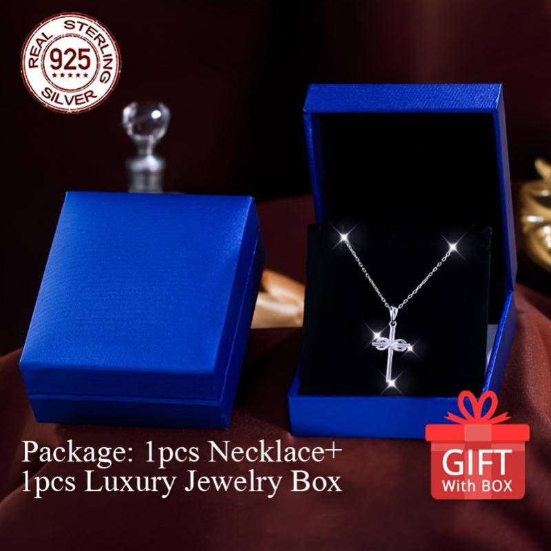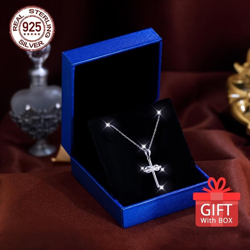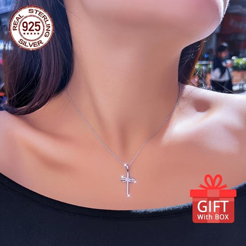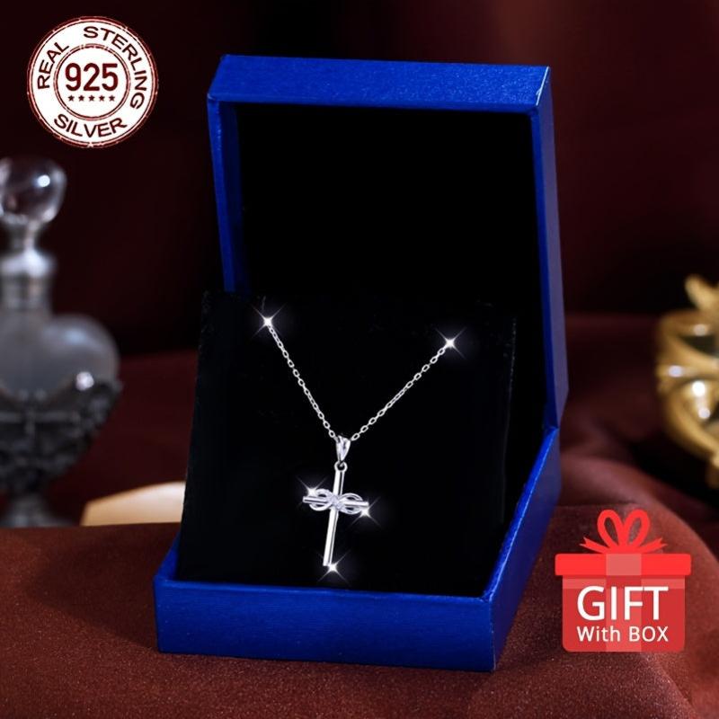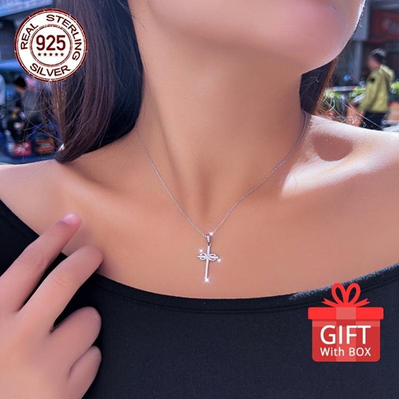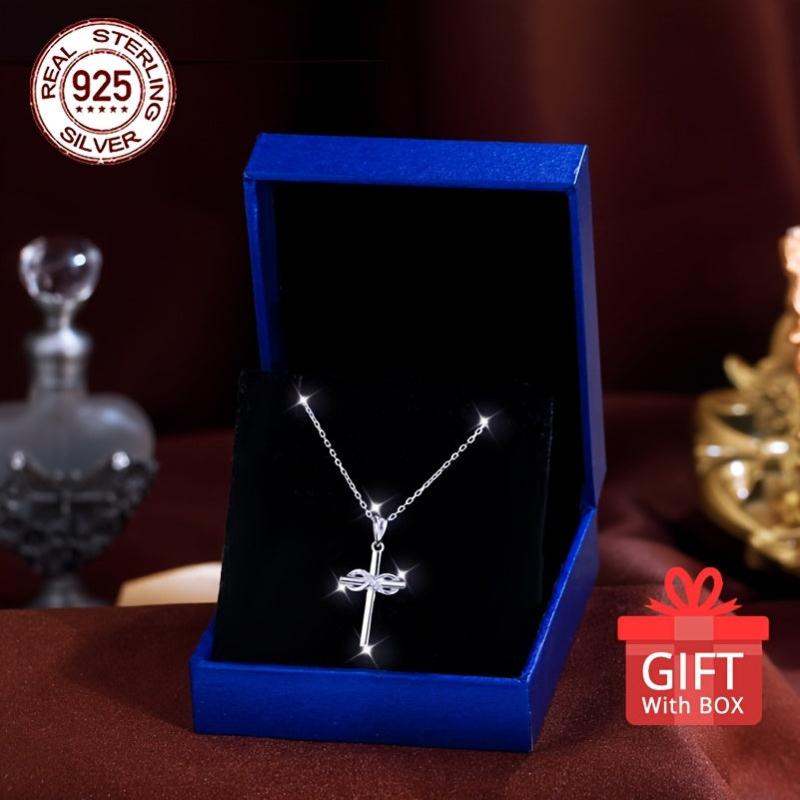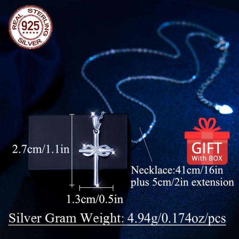 Add a touch of elegance with this 925 sterling silver pendant featuring an 8-shaped knot design and classic cross. Weighing 4.94g (0.174oz), this stylish Y-shaped necklace is an ideal accessory for any outfit.