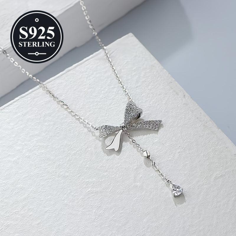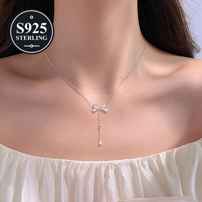 This hypoallergenic necklace features a charming bow pendant crafted from 925 sterling silver. It is perfect for women and makes a sweet gift for any occasion.