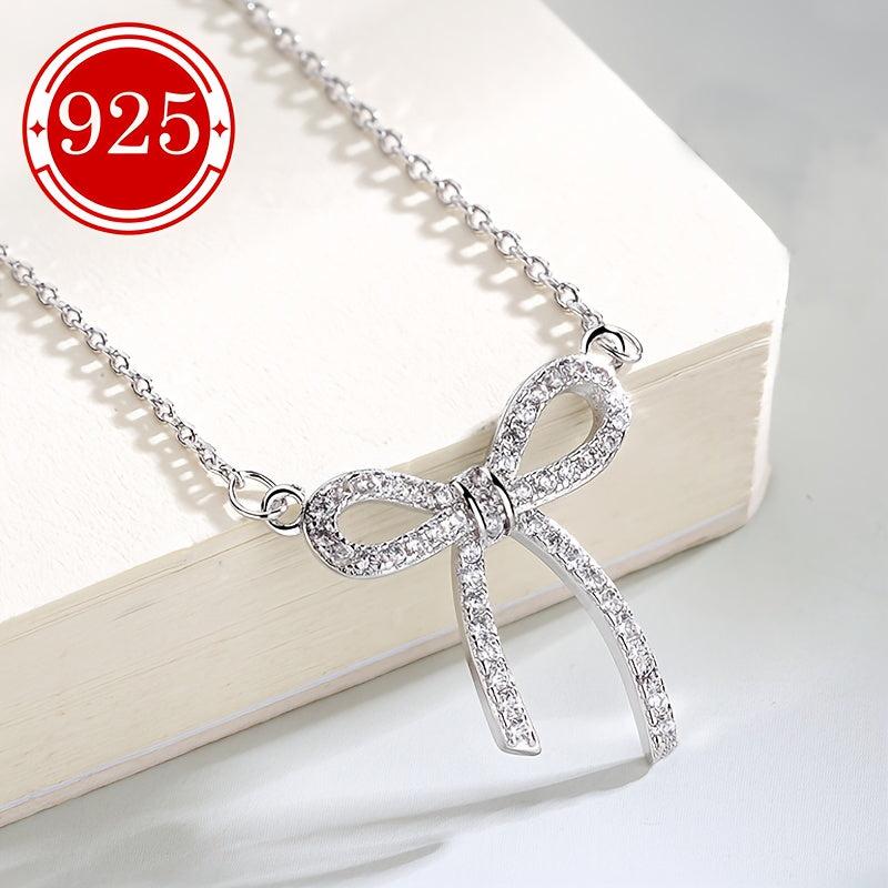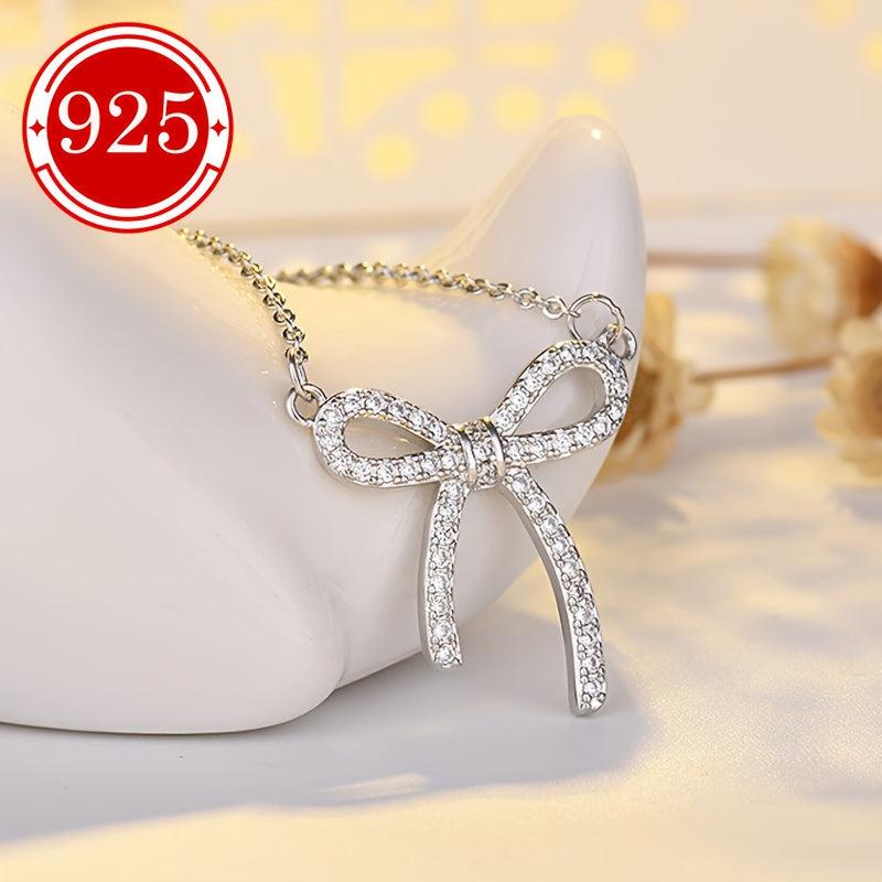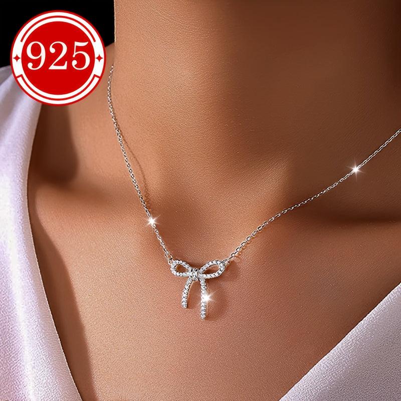 This stunning necklace features a bow tie pendant made from 925 silver and adorned with high-quality synthetic cubic zirconia. Perfect for daily wear, weddings, beach vacations, and special occasions. Ideal gift for loved ones.