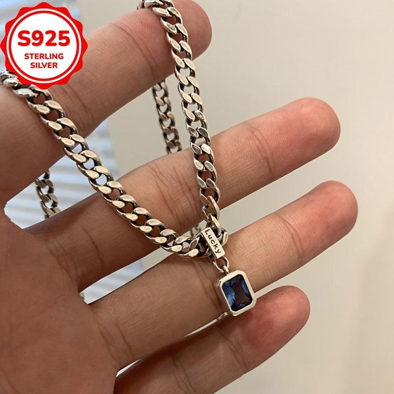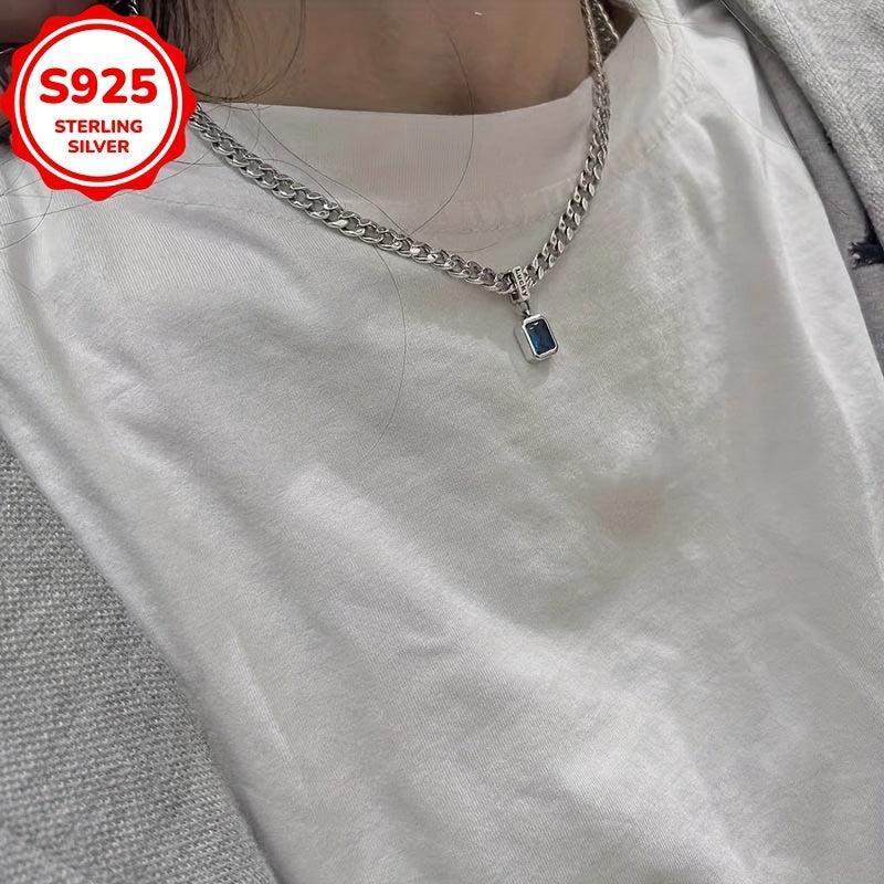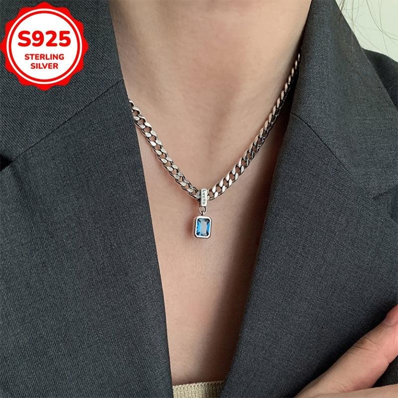 This 925 sterling silver tank chain necklace features a stunning cubic zirconia pendant. It is lightweight, hypoallergenic, and versatile for all seasons, making it a perfect gift for everyday wear.