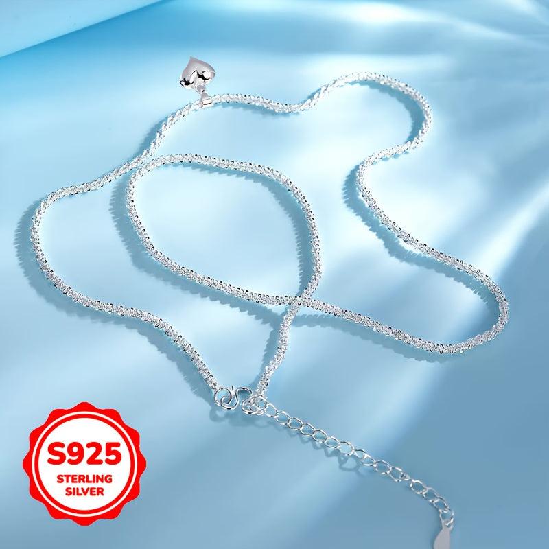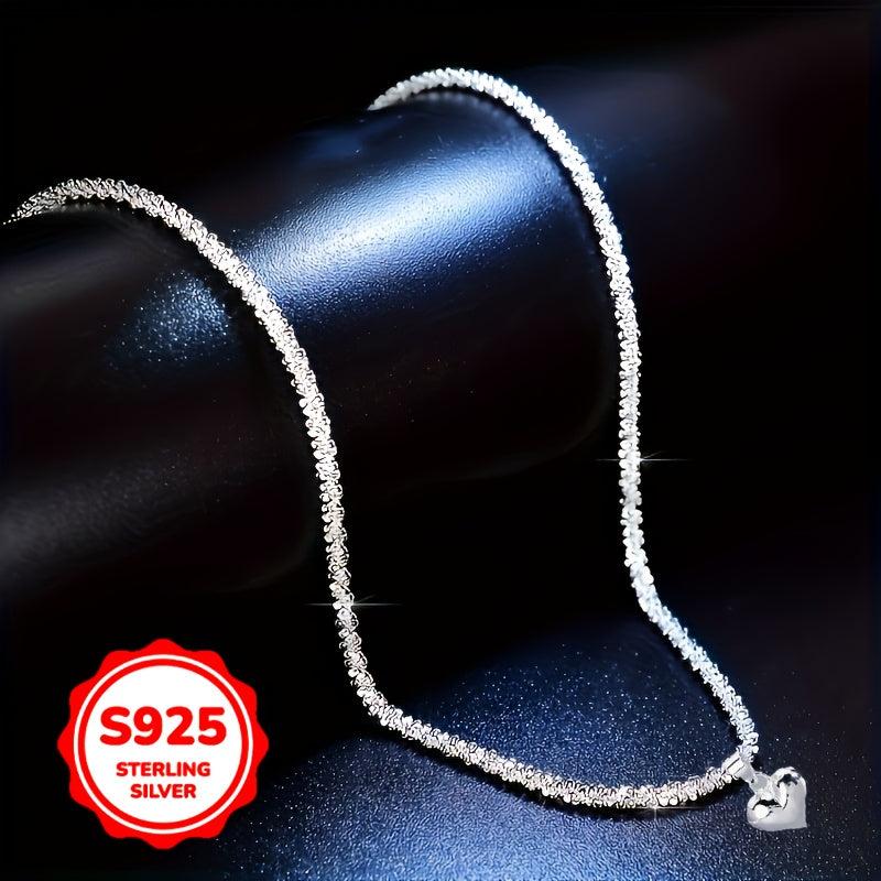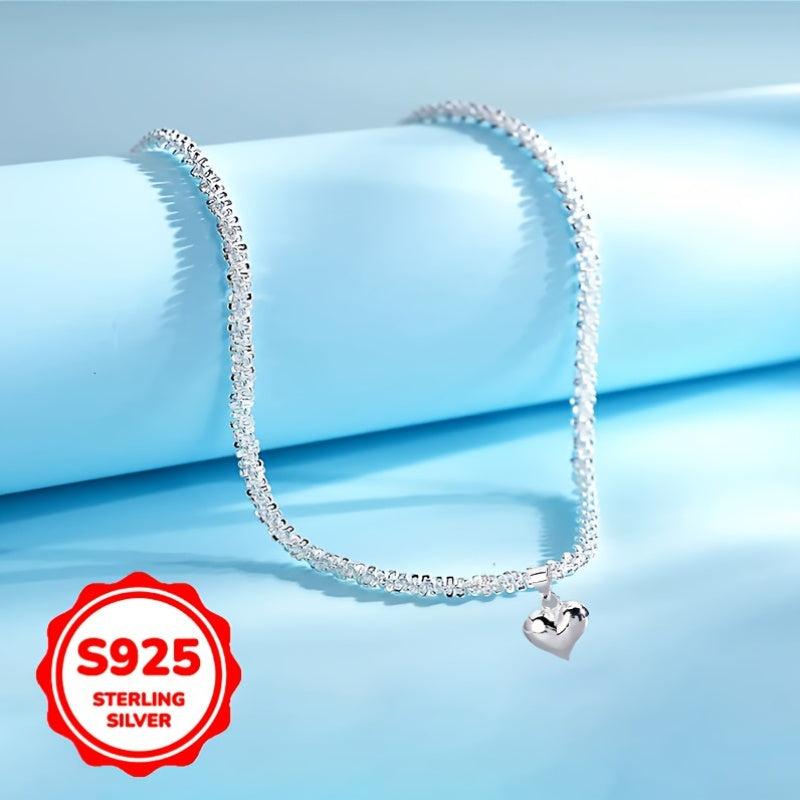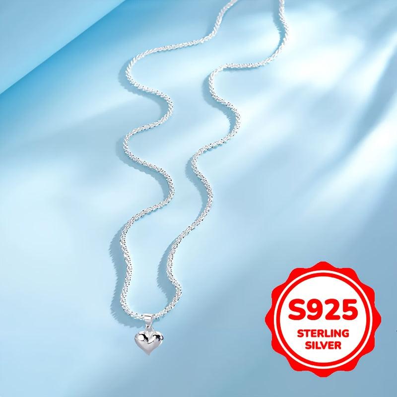 Add a touch of elegance to your party outfits with this 925 sterling silver chain necklace featuring a heart pendant. It's a versatile accessory that complements any outfit.