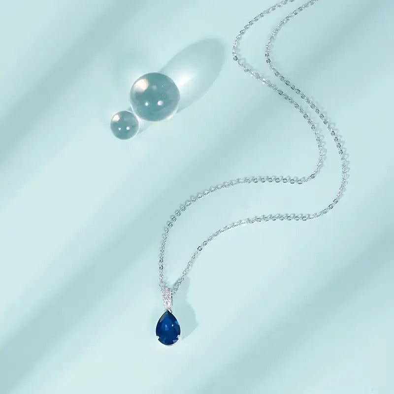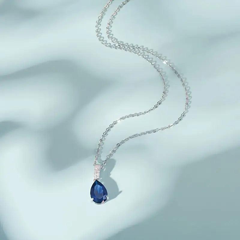 Elegant pear-shaped crystal pendant necklace made with 925 sterling silver, perfect for gifting on special occasions like Valentine's Day, Christmas, and anniversaries.