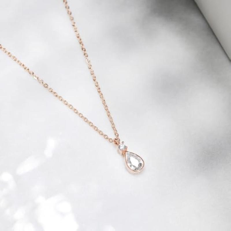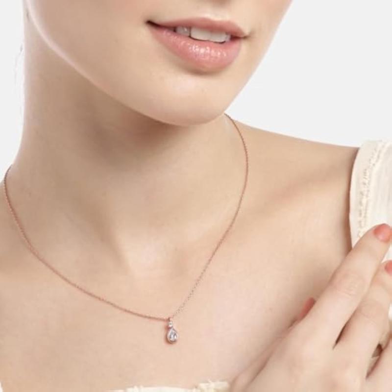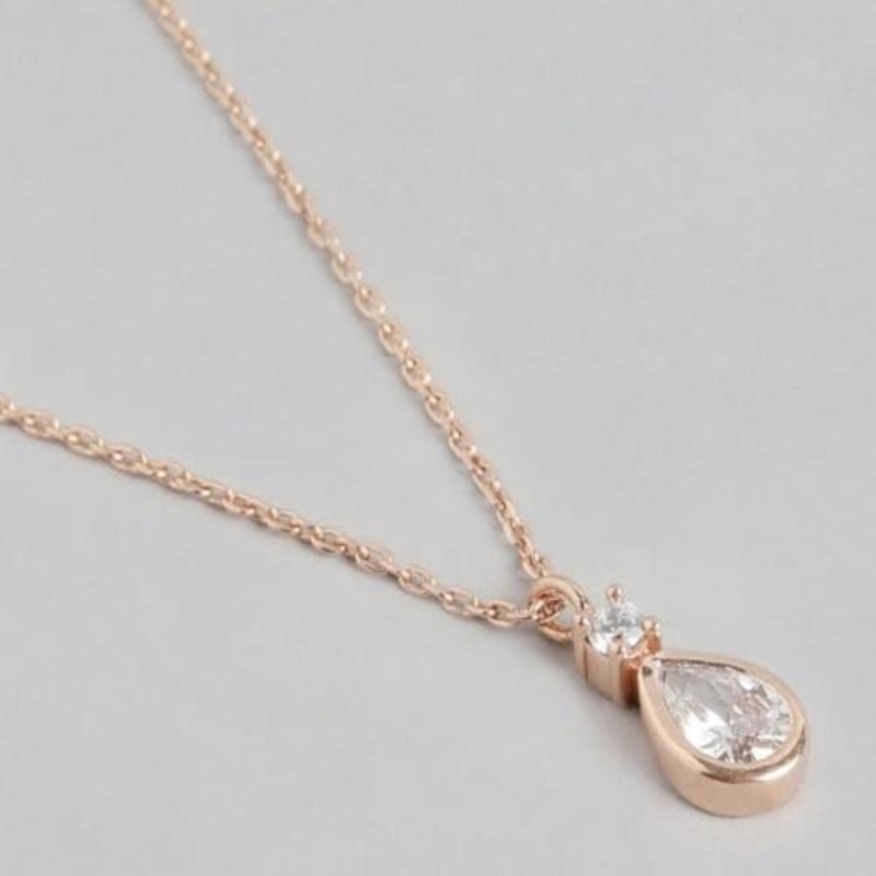 This elegant rose plated necklace is a perfect gift for your special lady. Made of 925 sterling silver and adorned with drop cubic zircon, it is a beautiful accessory.
