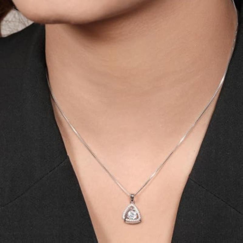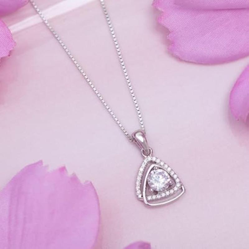 Dazzling rhodium-plated necklace with delicate charm and cubic zirconia.