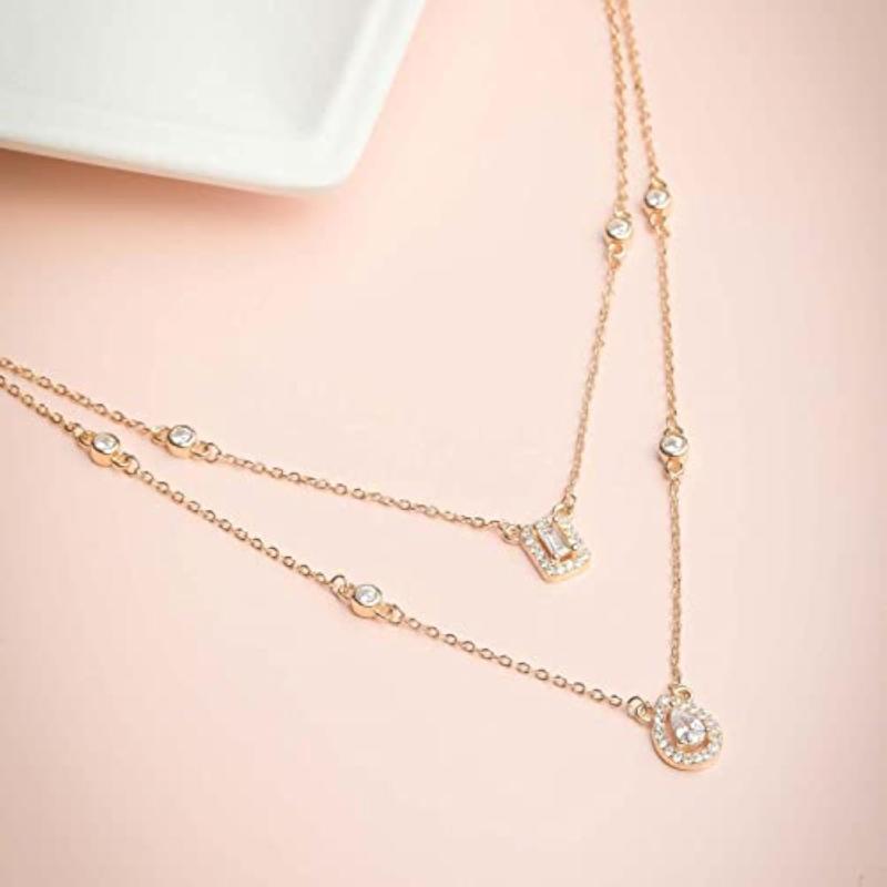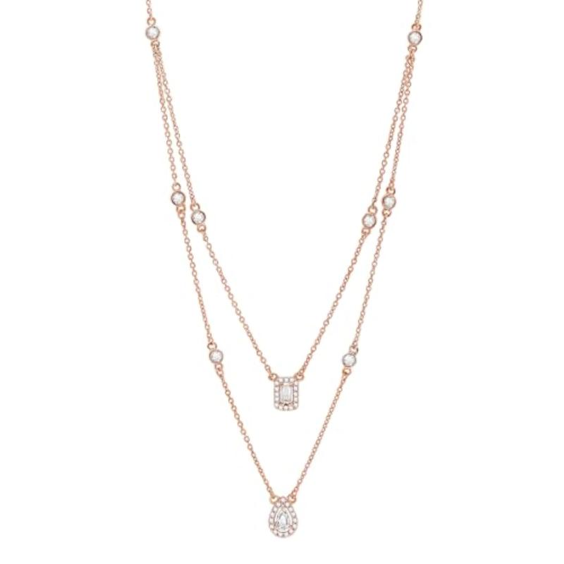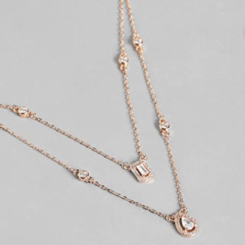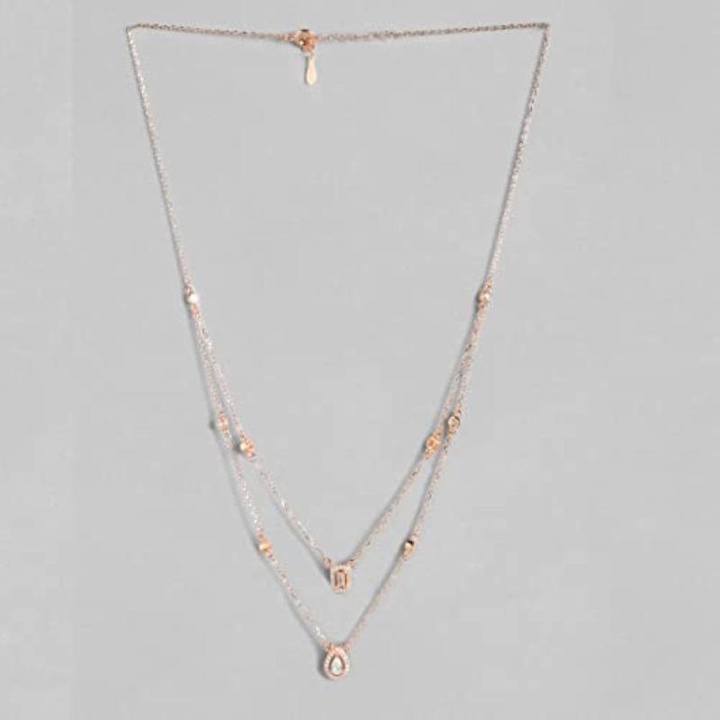 Stunning 925 sterling silver necklace with layered cubic zirconia drops and beads on a rose plated chain.