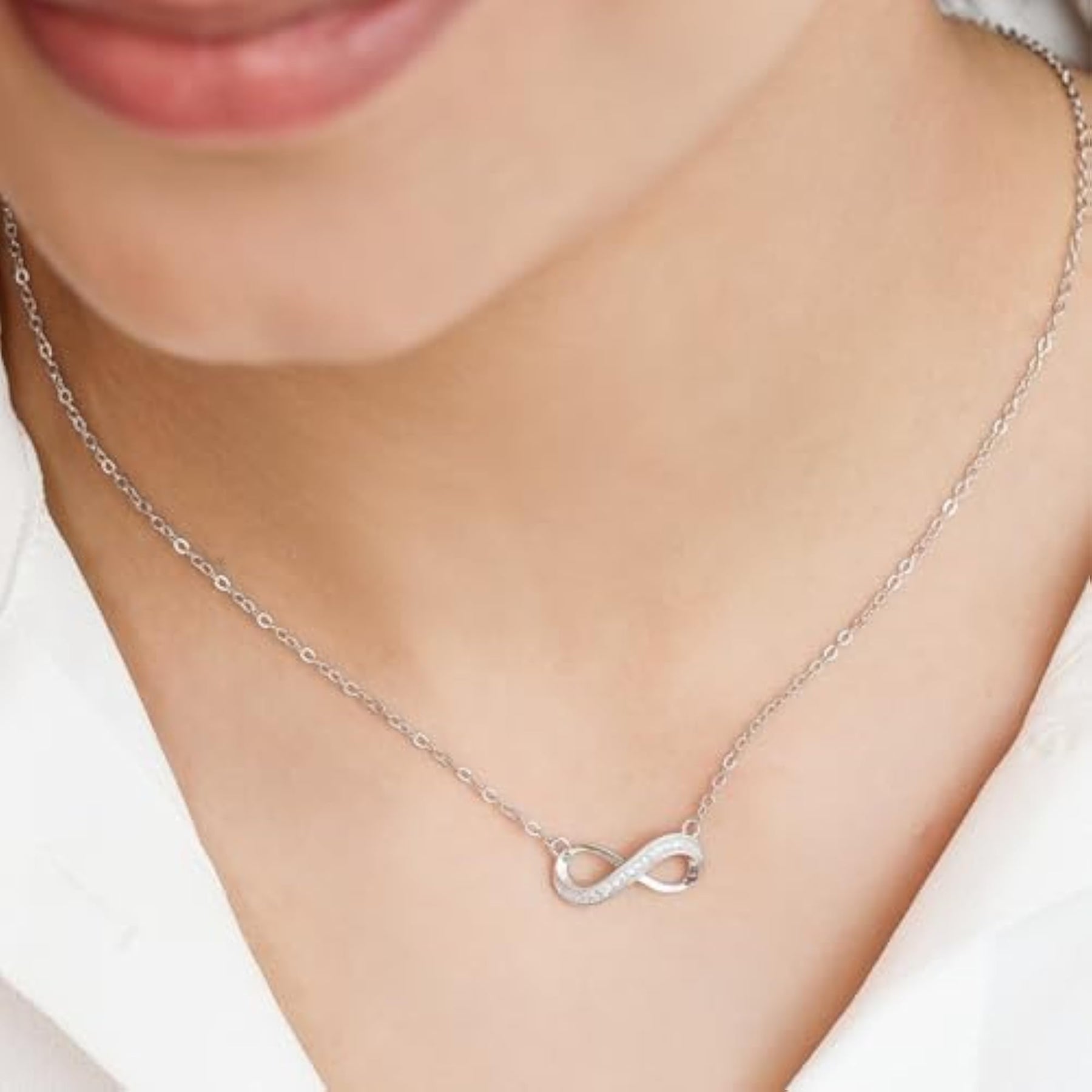 Add a touch of elegance to your look with this rhodium plated chain featuring a cubic zirconia infinity locket. Perfect for everyday wear or special occasions.