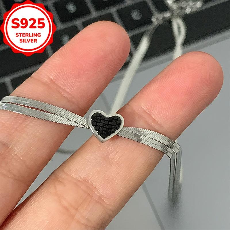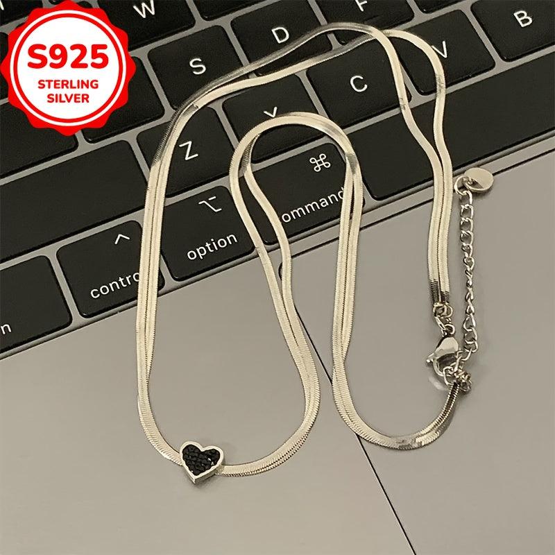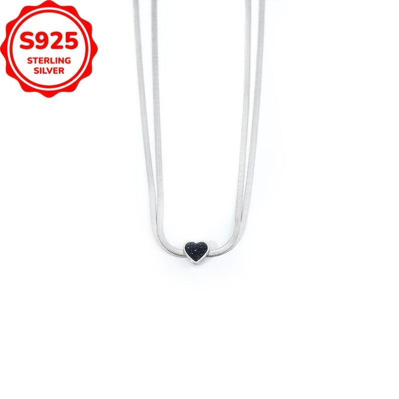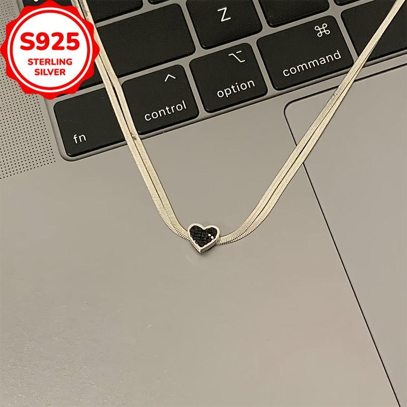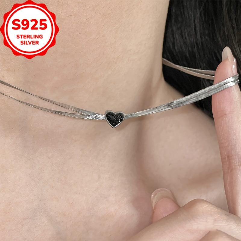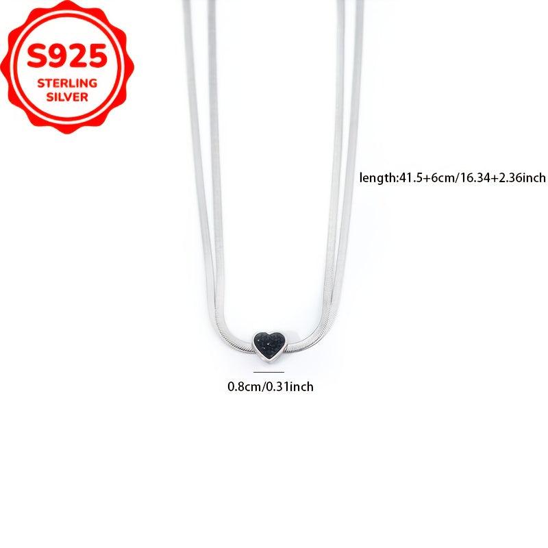 This stylish 925 sterling silver necklace features a dark heart pendant on a double layer snake chain. Perfect for daily wear and gifting on occasions like St. Patrick's Day. Suitable for all seasons.