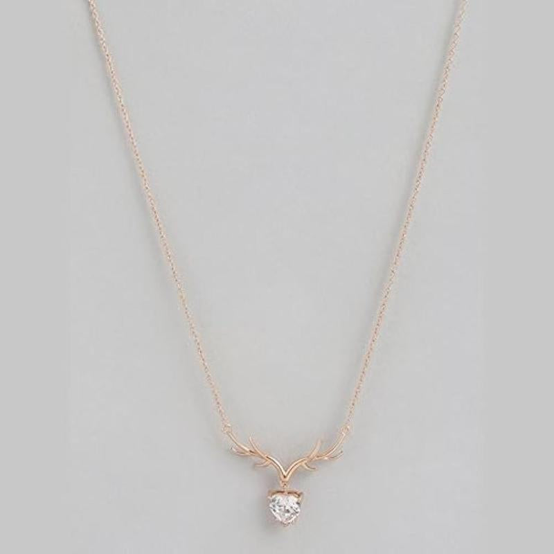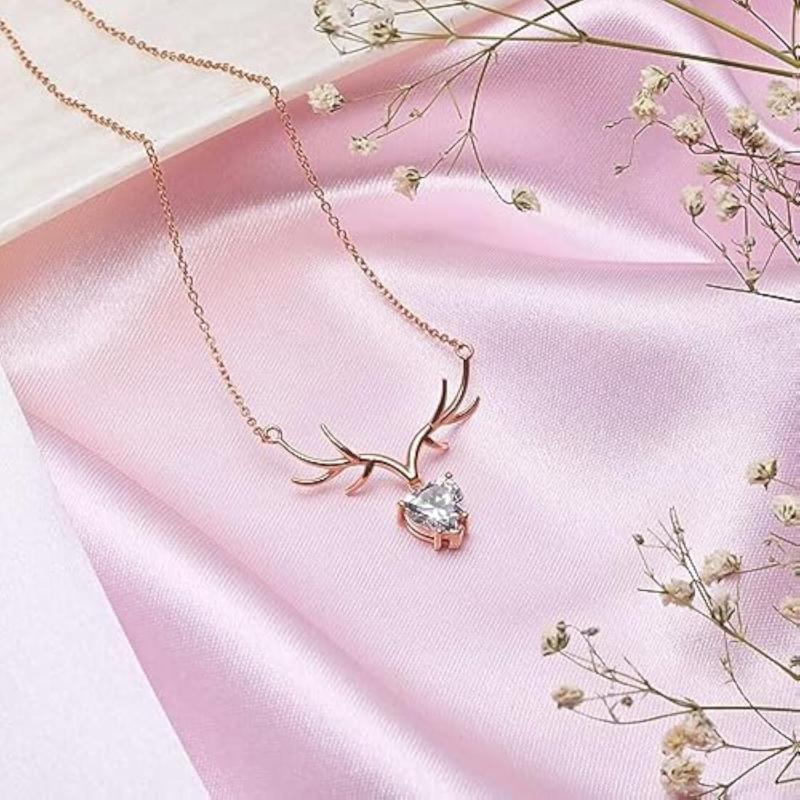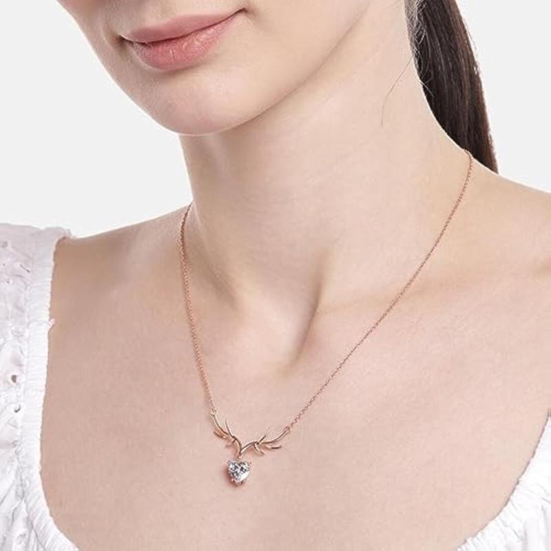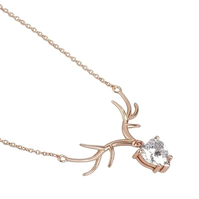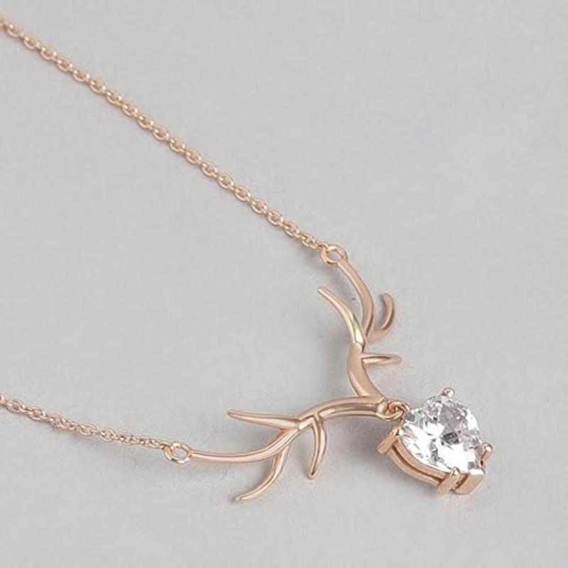 This stunning necklace features a deer drop pendant with cubic zirconia stones, crafted in 925 sterling silver with rose gold plating. A perfect gift for any occasion!