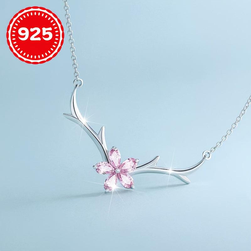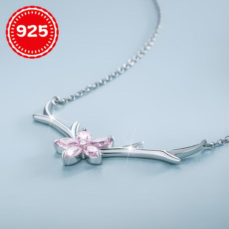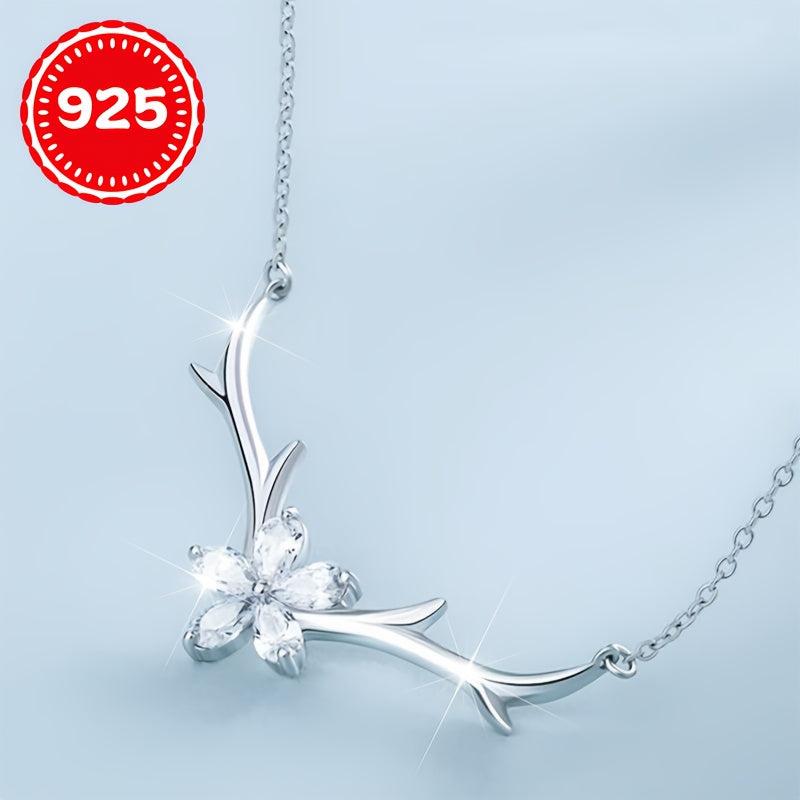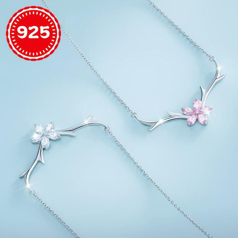 This stunning 925 silver flower pendant necklace is a low-allergy and durable accessory featuring zirconia stone. Perfect for daily wear, weddings, beach outings, and more.