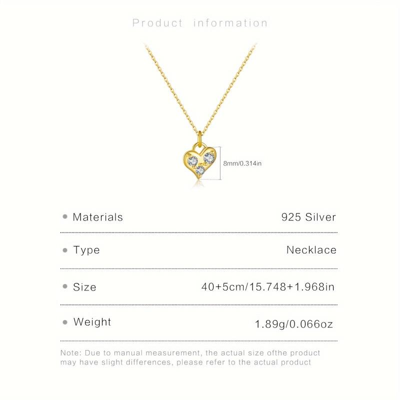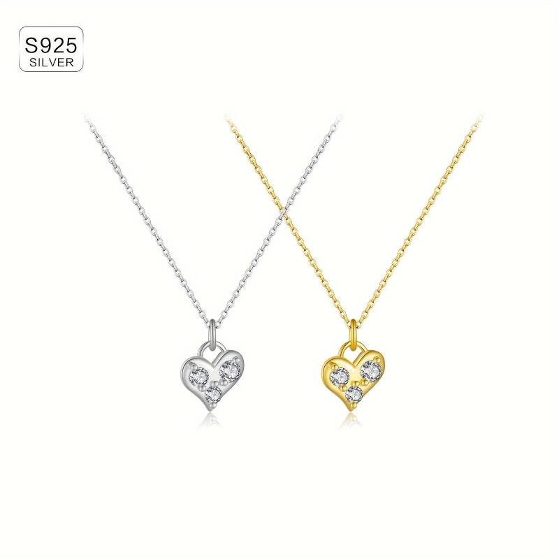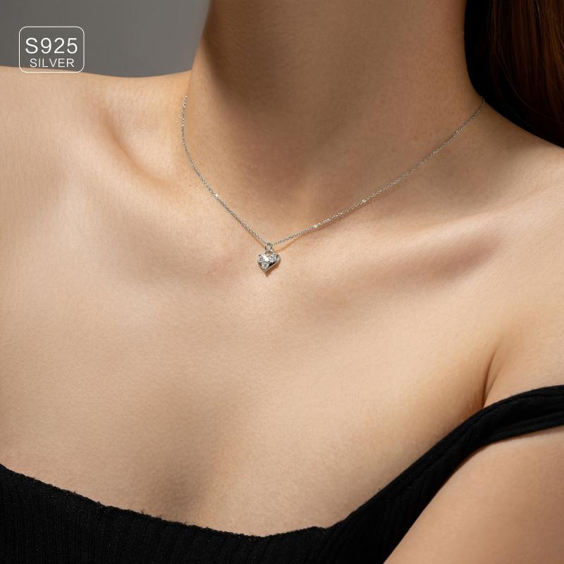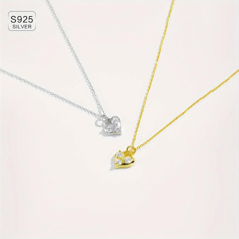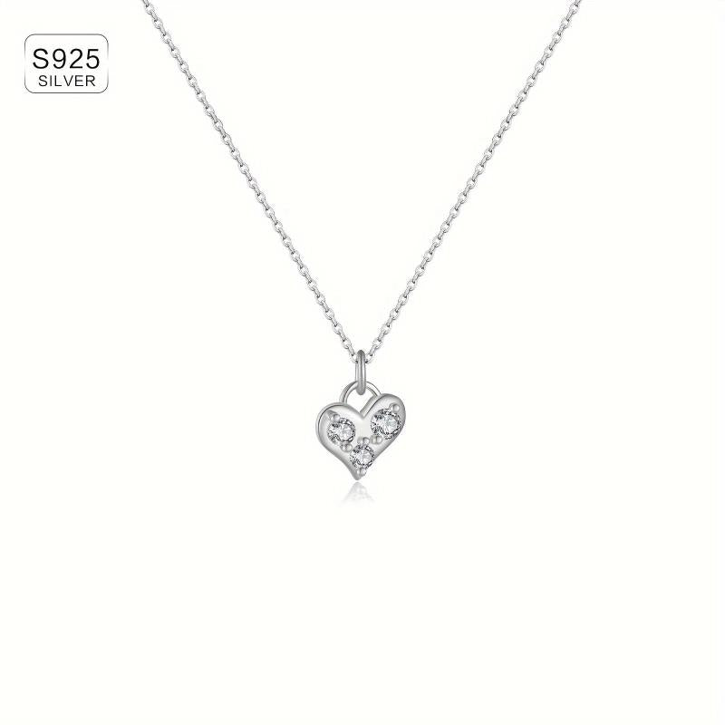 Elegant 925 silver heart pendant necklace featuring sparkling synthetic zirconia, ideal for casual attire and special occasions. A perfect gift for women.