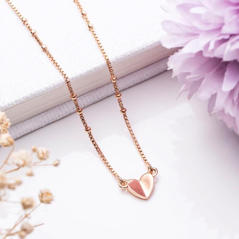 Elegantly designed necklace featuring a sleek heart pendant plated with rose gold. Made from high-quality 925 sterling silver with a visible 925 hallmark.