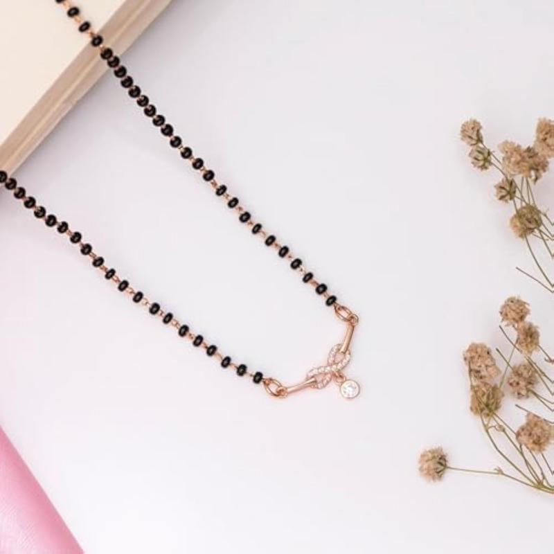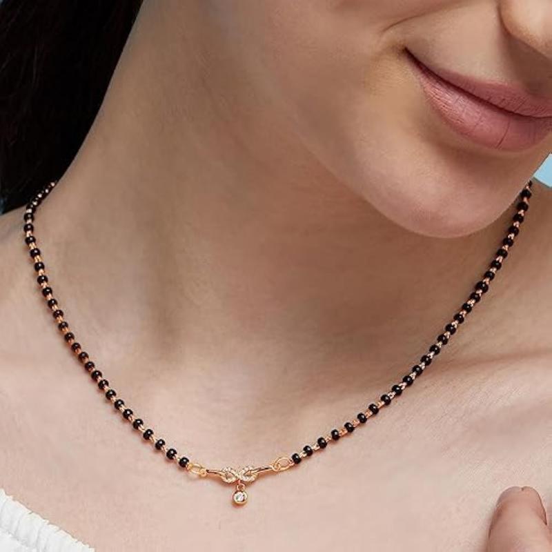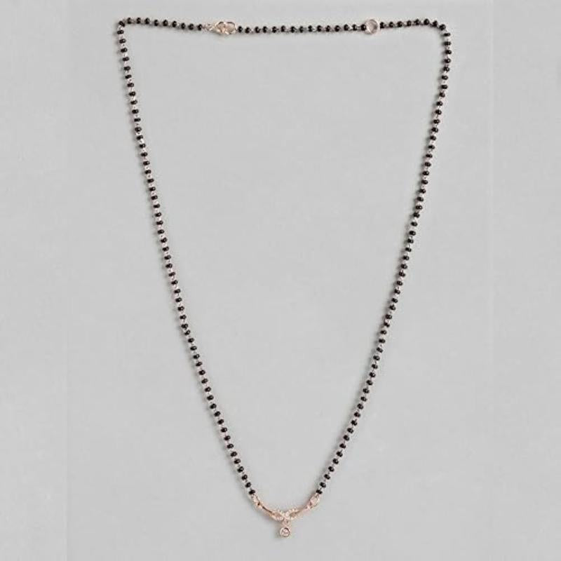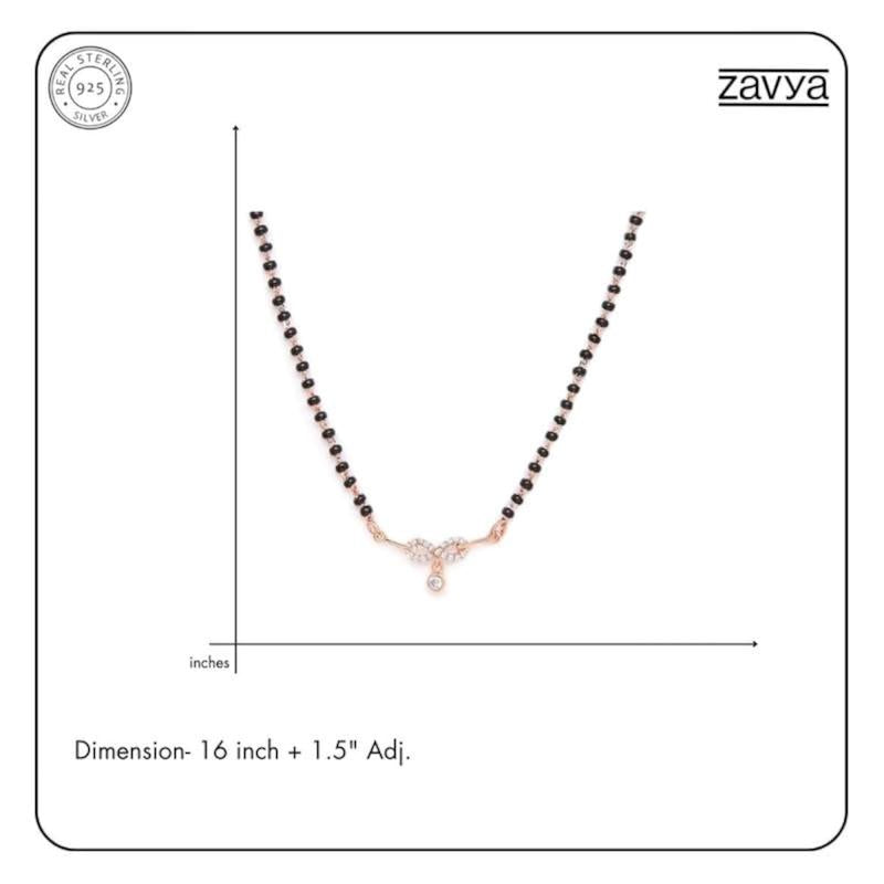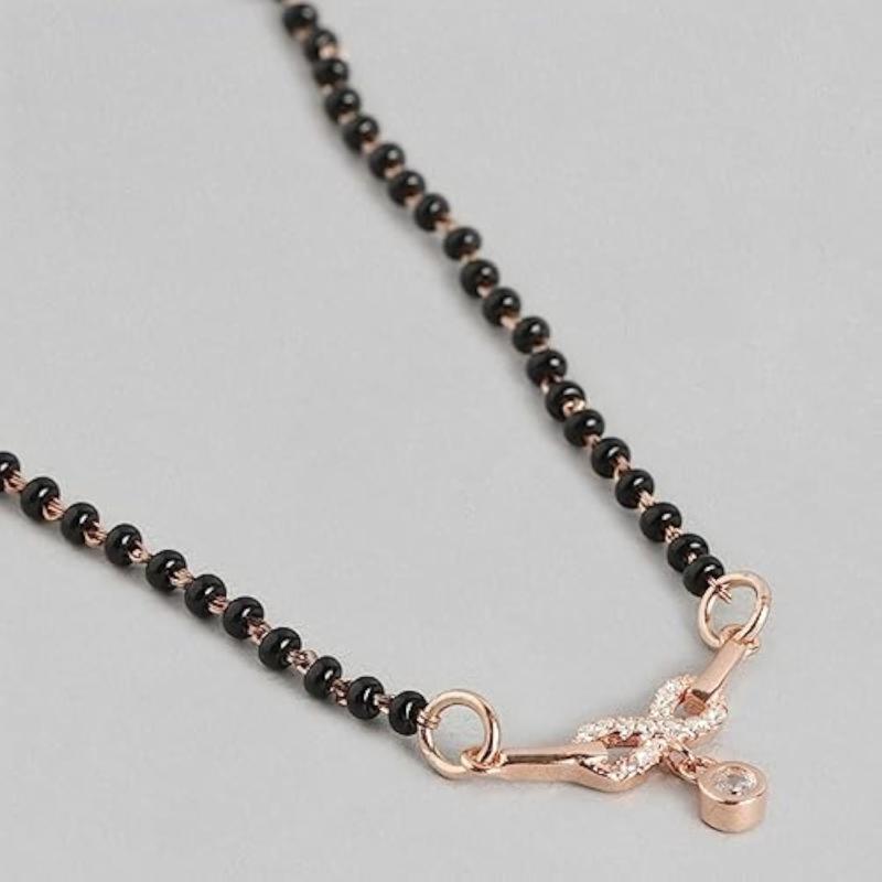 Elegant 925 sterling silver mangalsutra with circular infinity drop design and sparkling cubic zirconia in rose plating.