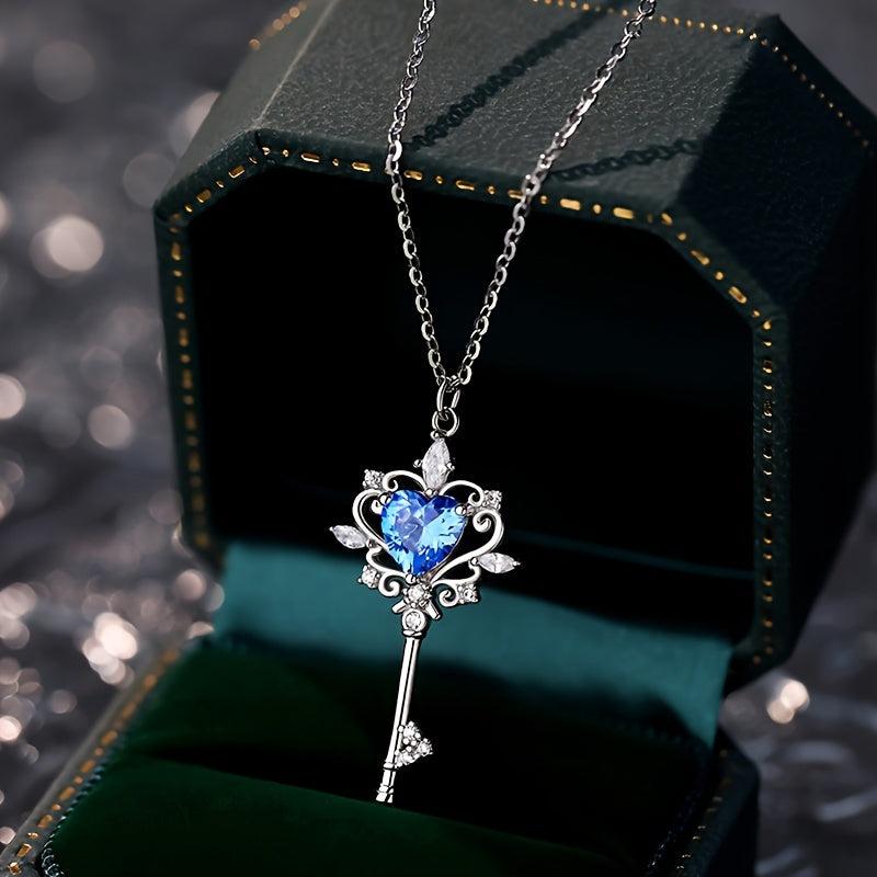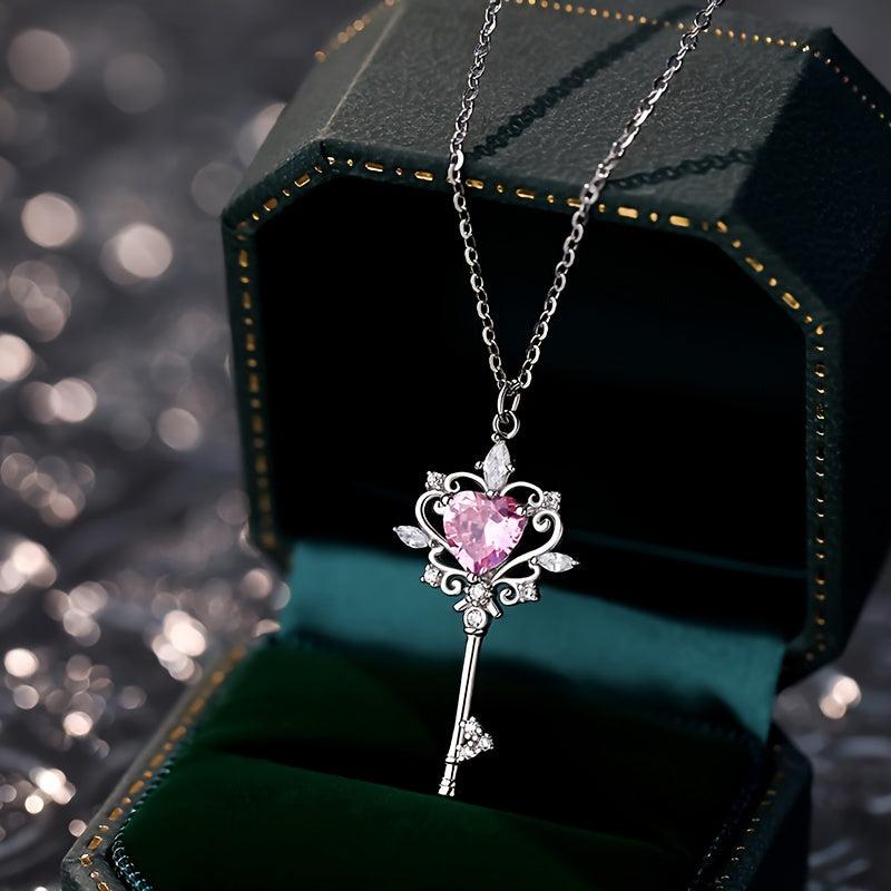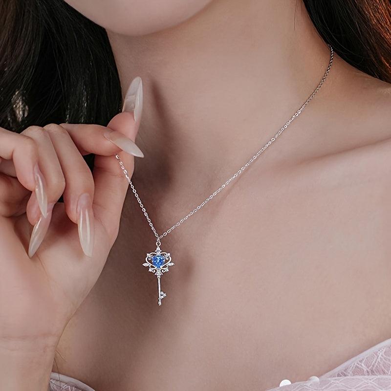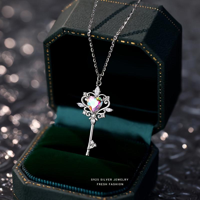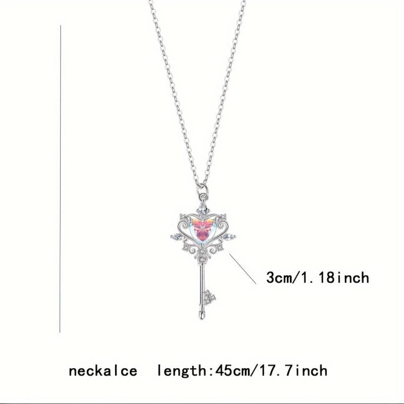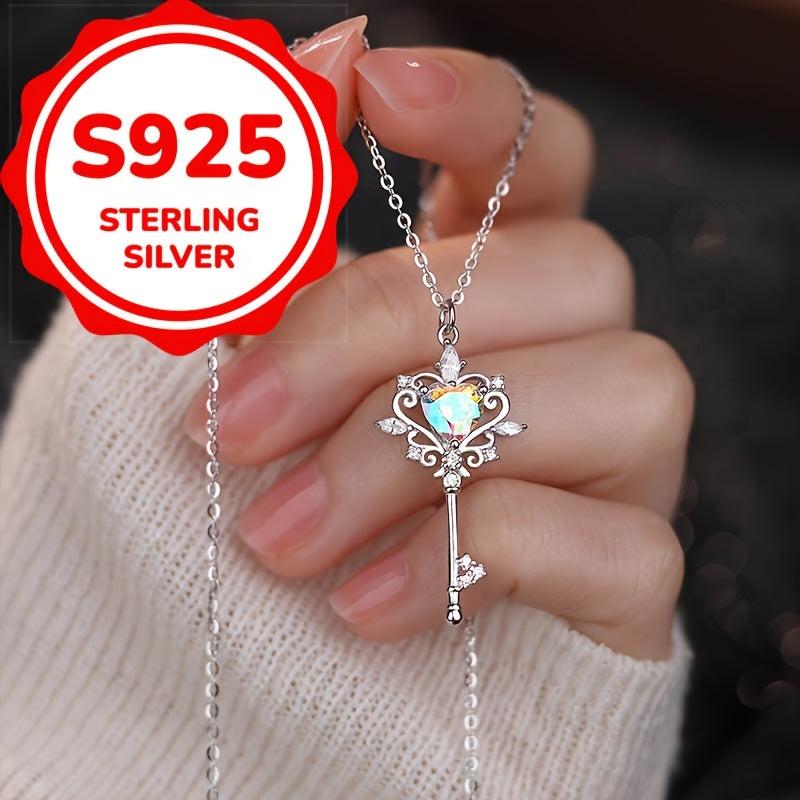 This stunning key pendant necklace features a rainbow heart gemstone set in 925 silver, making it a perfect gift for April birthdays or any special occasion.