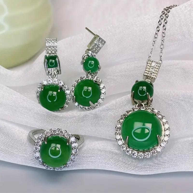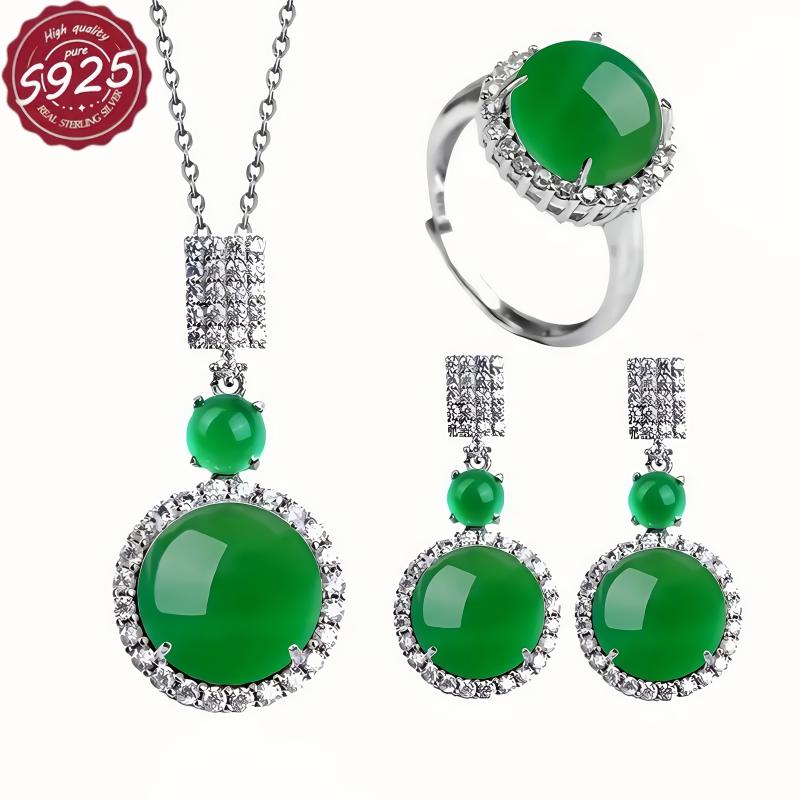 Elevate your style with this high-quality 925 silver jewelry set featuring natural stones. The set includes a ring, necklace, and a pair of earrings, adding a touch of elegance to any outfit.