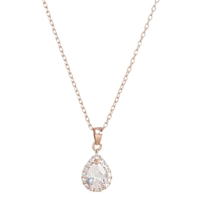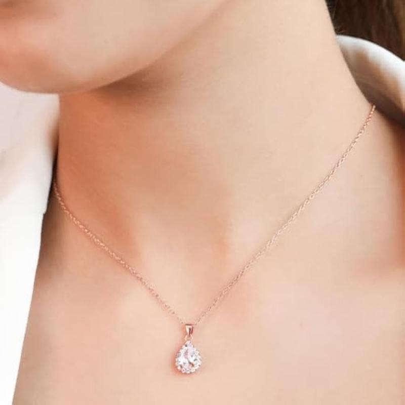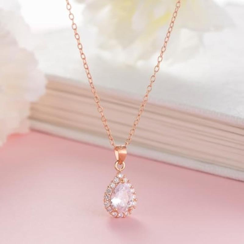 Elegant and stunning, this necklace features a sparkling oval solitaire halo design with rose plating. Made of high-quality 925 sterling silver with a 925 hallmark.