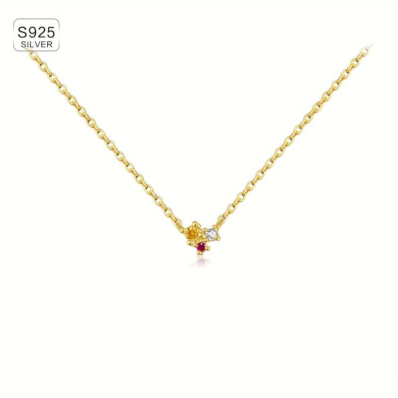 Elegant pendant necklace featuring synthetic cubic zirconia stones with a golden plated geometric design. Hypoallergenic and suitable for daily wear or parties.