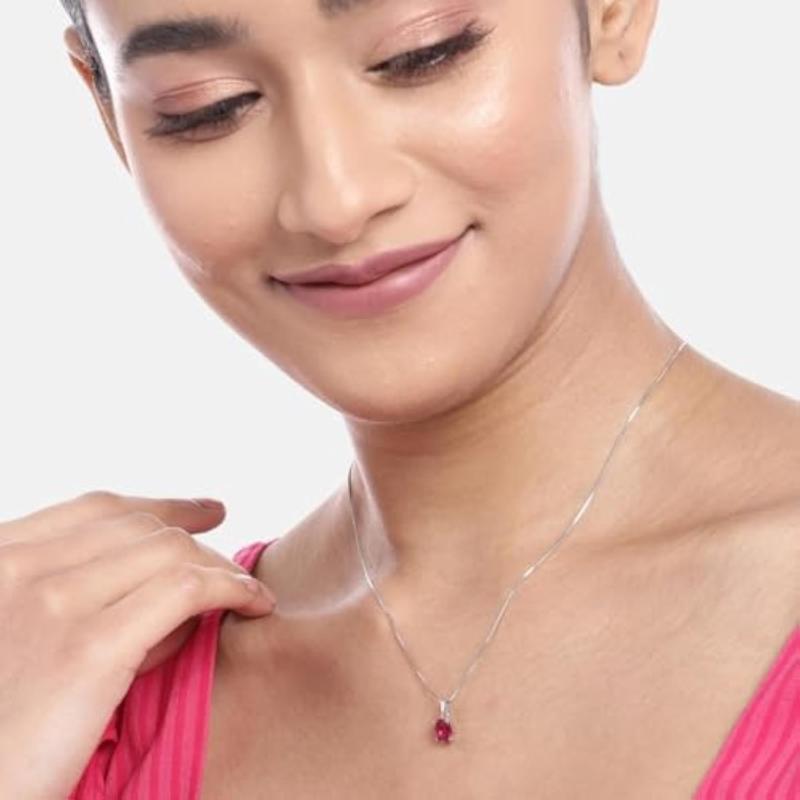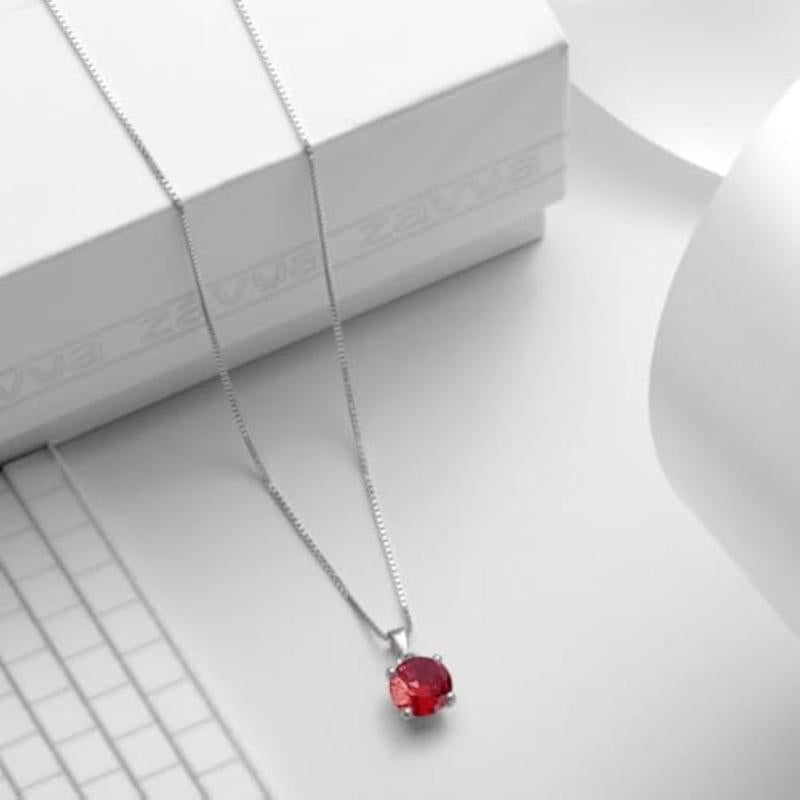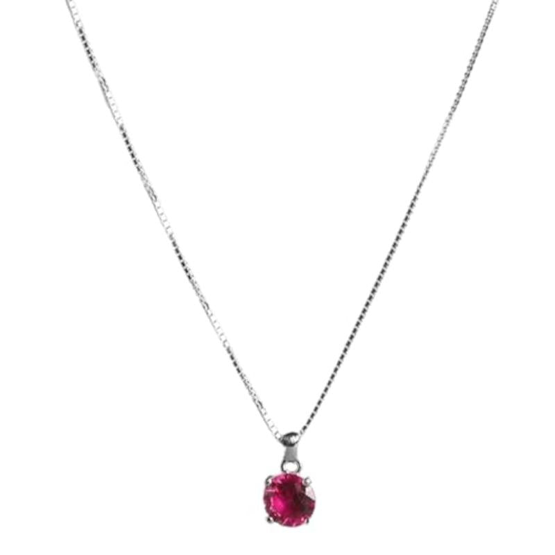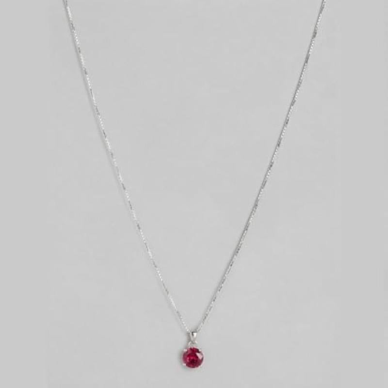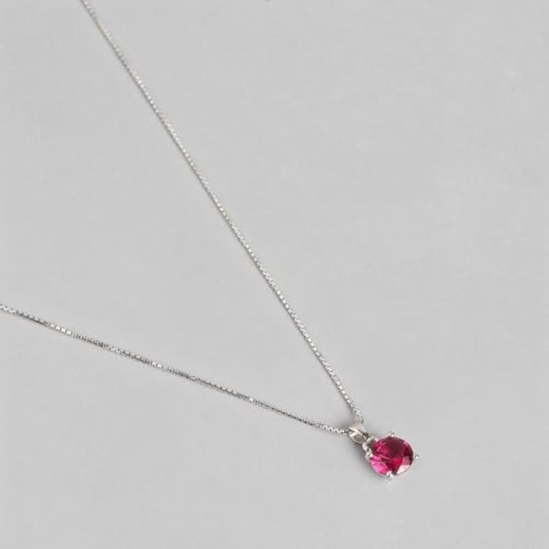 Elegant red circular solitaire pendant with rhodium plating. Made of genuine 925 sterling silver. Hallmark for authenticity.