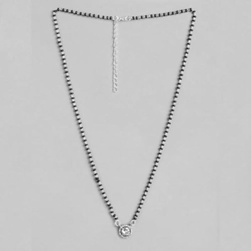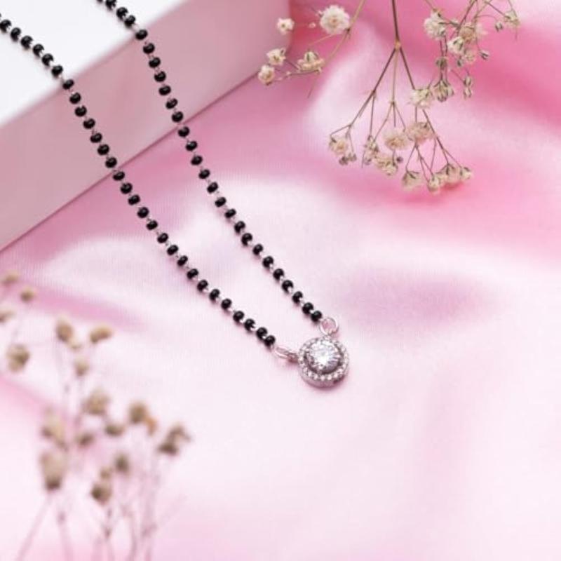 Celebrate Mother's Day with this special 925 sterling silver solitaire halo rhodium plated mangalsutra. The perfect gift for women with 925 stamp.