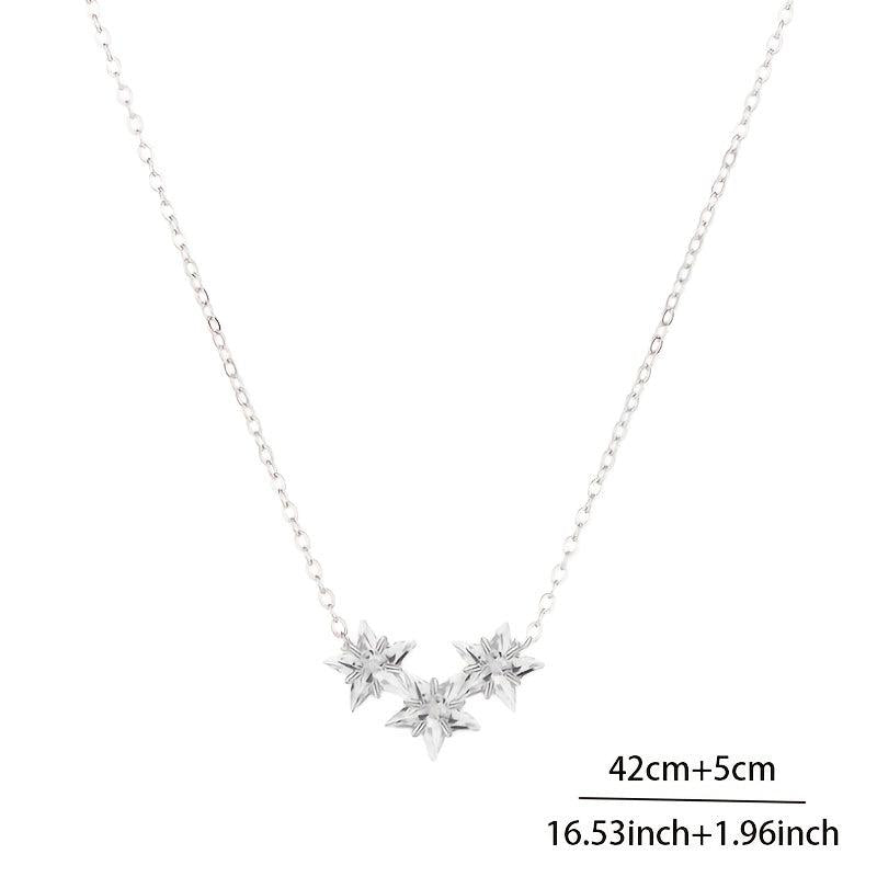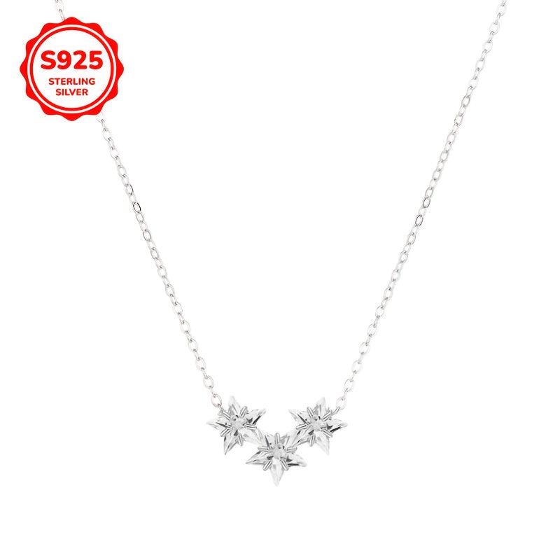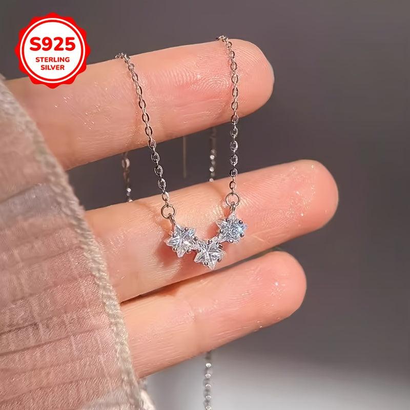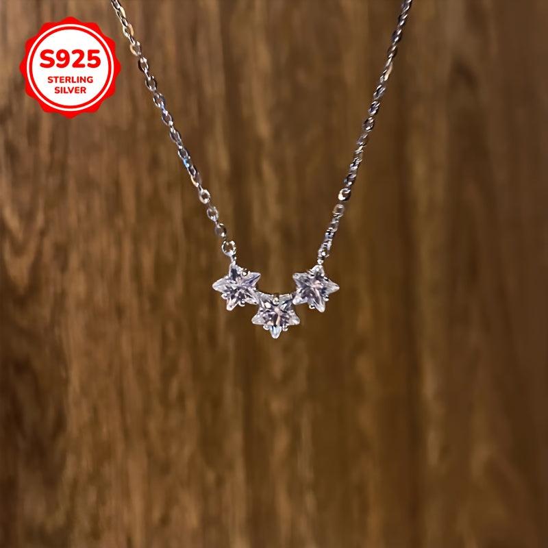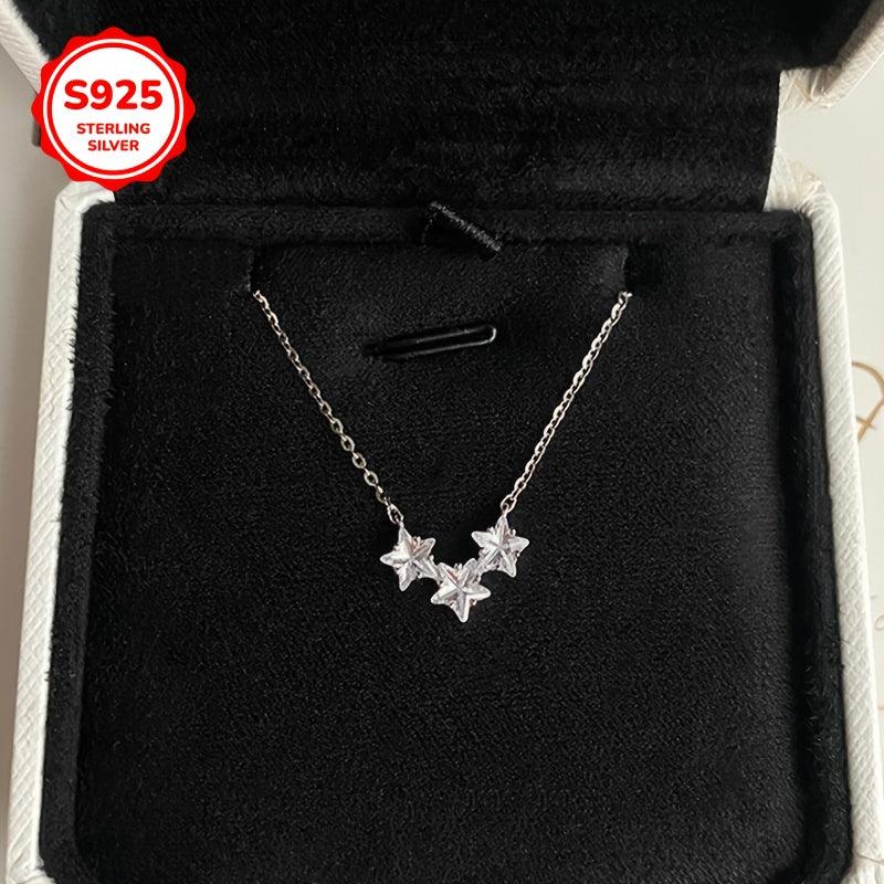 Elegant 925 sterling silver necklace featuring three star-shaped pendants with sparkling synthetic zirconia stones.