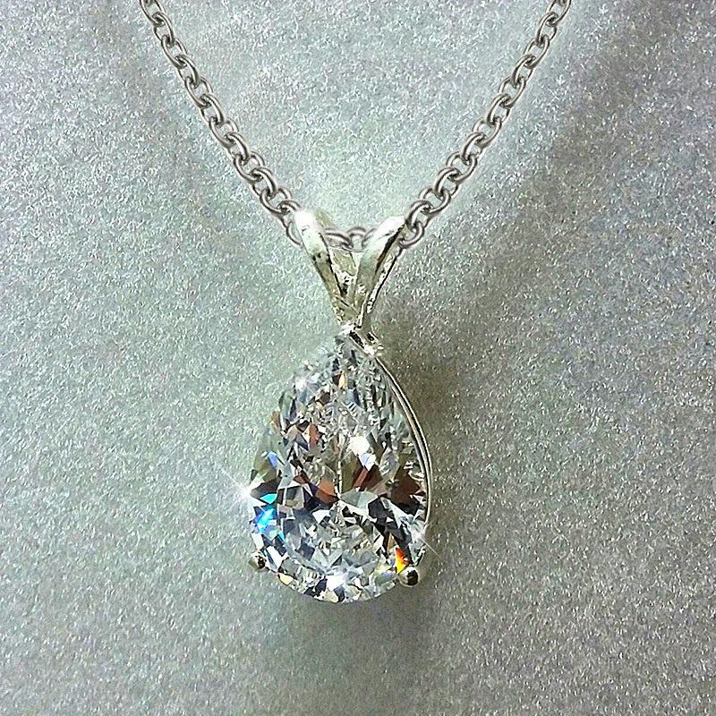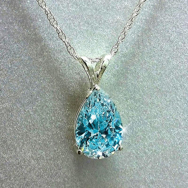 Elegant 925 silver plated necklace with teardrop gemstone zircon pendant. Perfect for weddings, proposals, and parties.