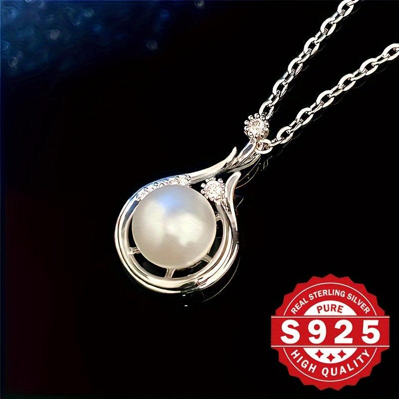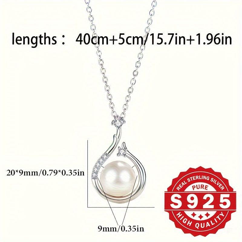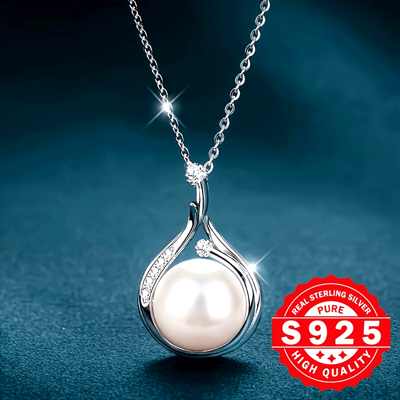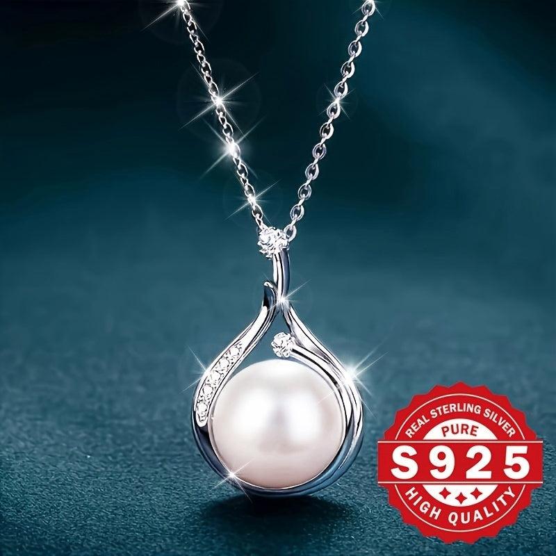 This teardrop pearl necklace is made with 925 sterling silver and features sparkling accents. It's perfect for everyday elegance and makes a great gift for mothers.