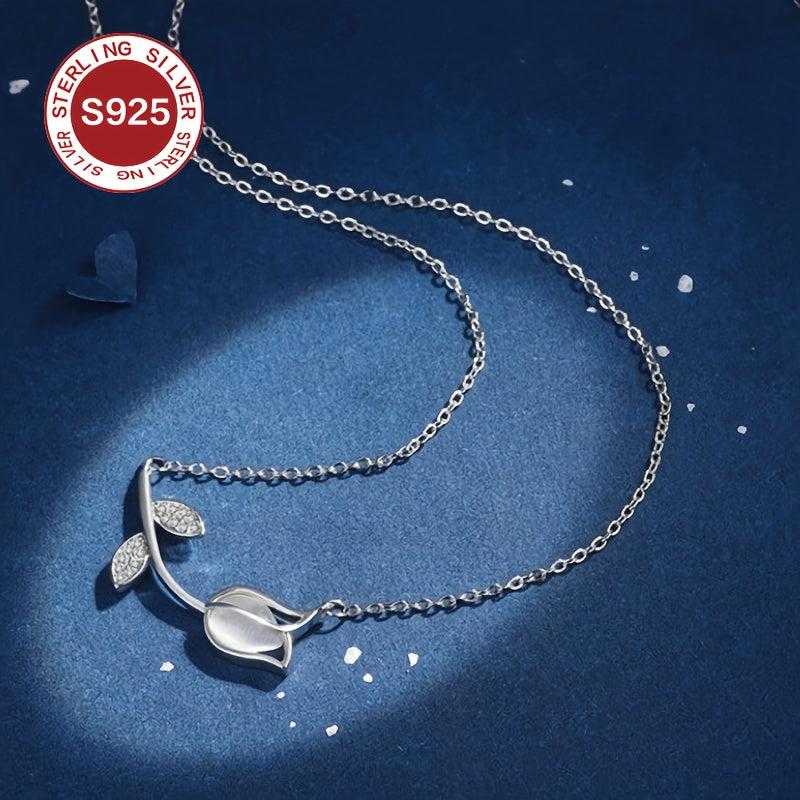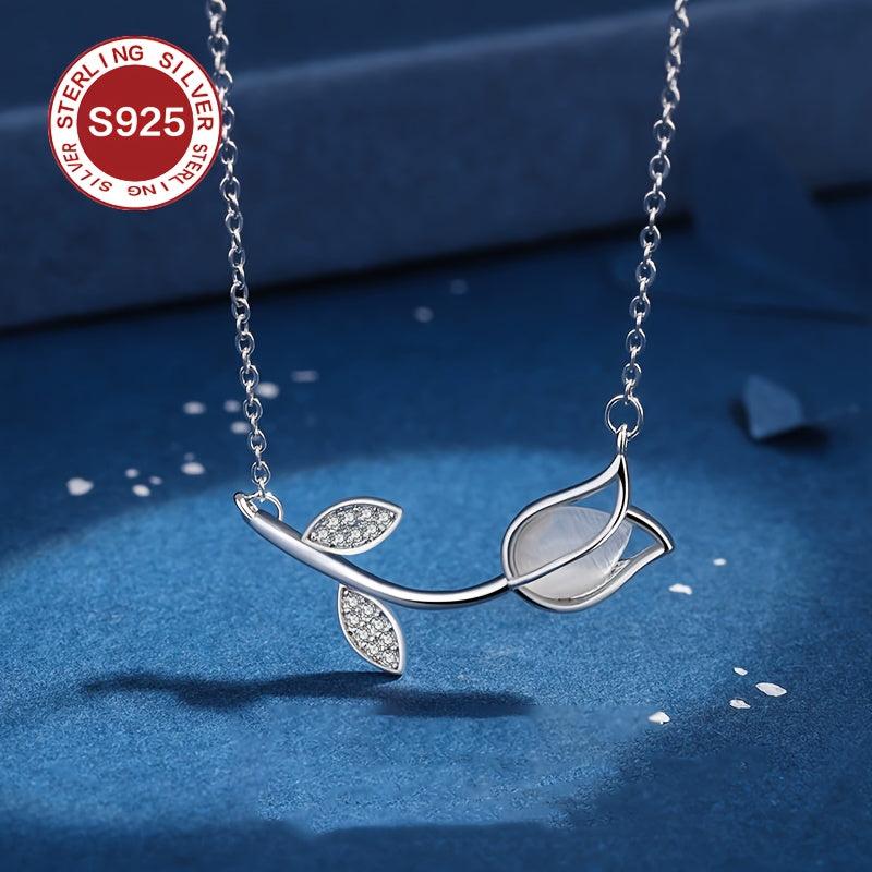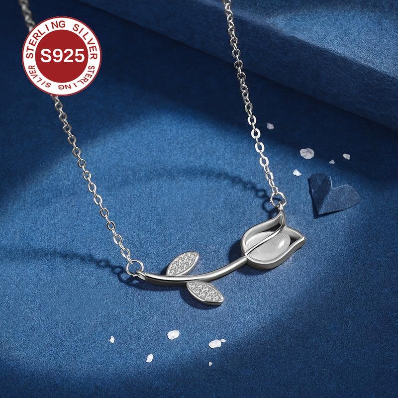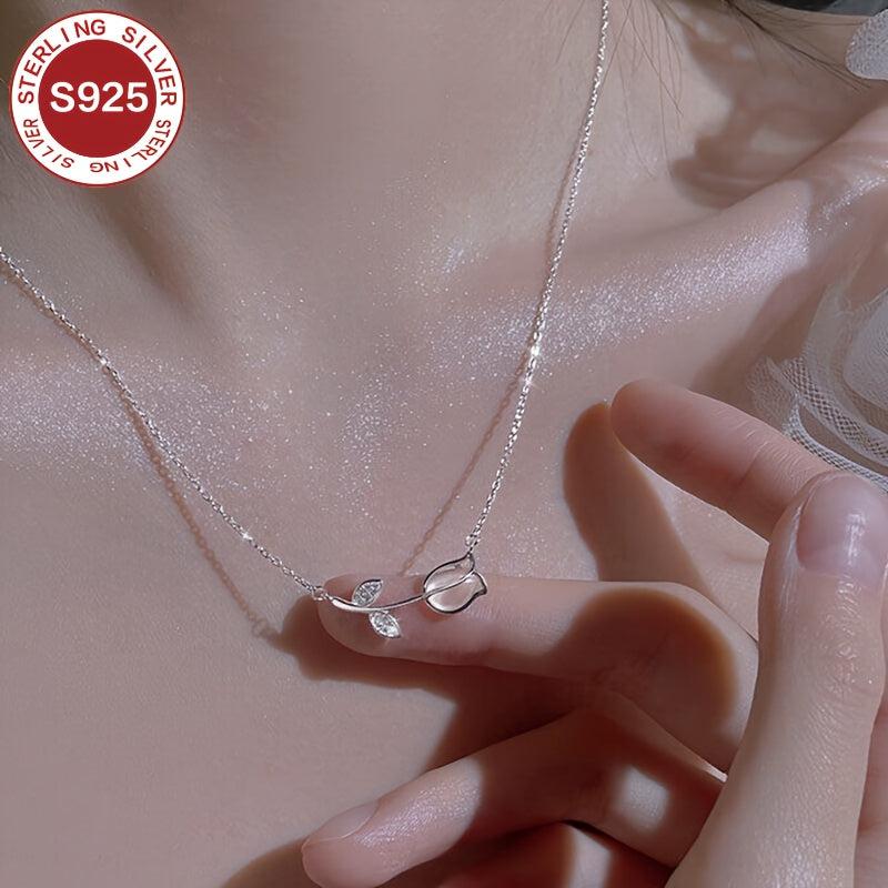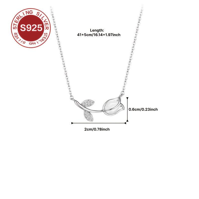 This stunning 925 sterling silver tulip pendant necklace features a lightweight, glittery chain. Perfect for women with allergies, it makes an ideal gift for Valentine's Day, Mother's Day, or any special occasion.