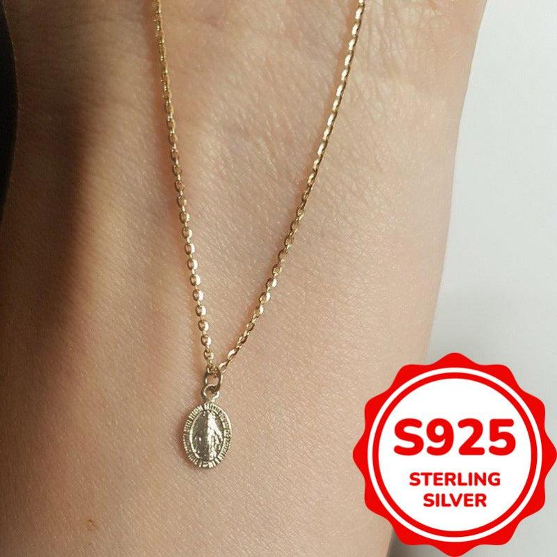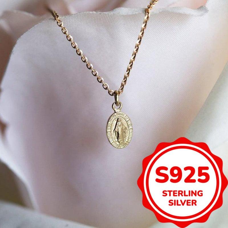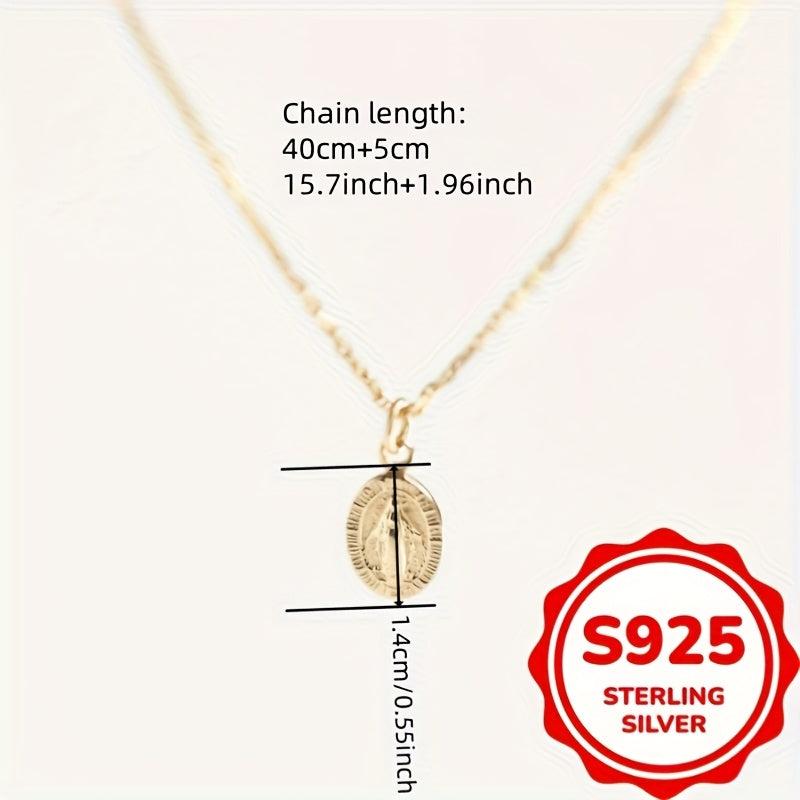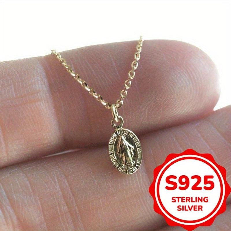 This 925 sterling silver necklace features a Virgin Mary pendant in a golden tone, perfect for daily wear and parties. It adds a touch of religious elegance to your outfit.