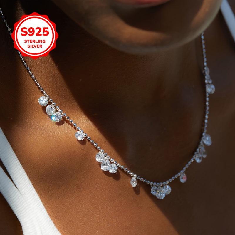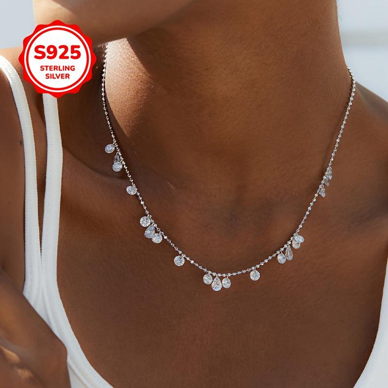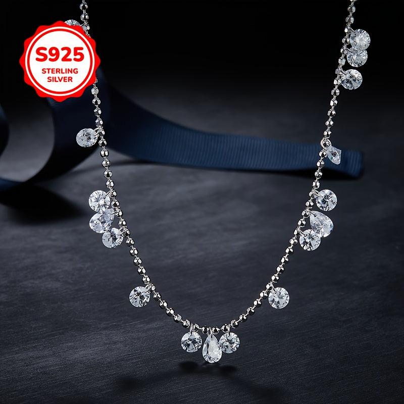 Sparkling starry river clavicle chain necklace crafted from 925 sterling silver, perfect gift for women on Valentine's Day or any occasion.