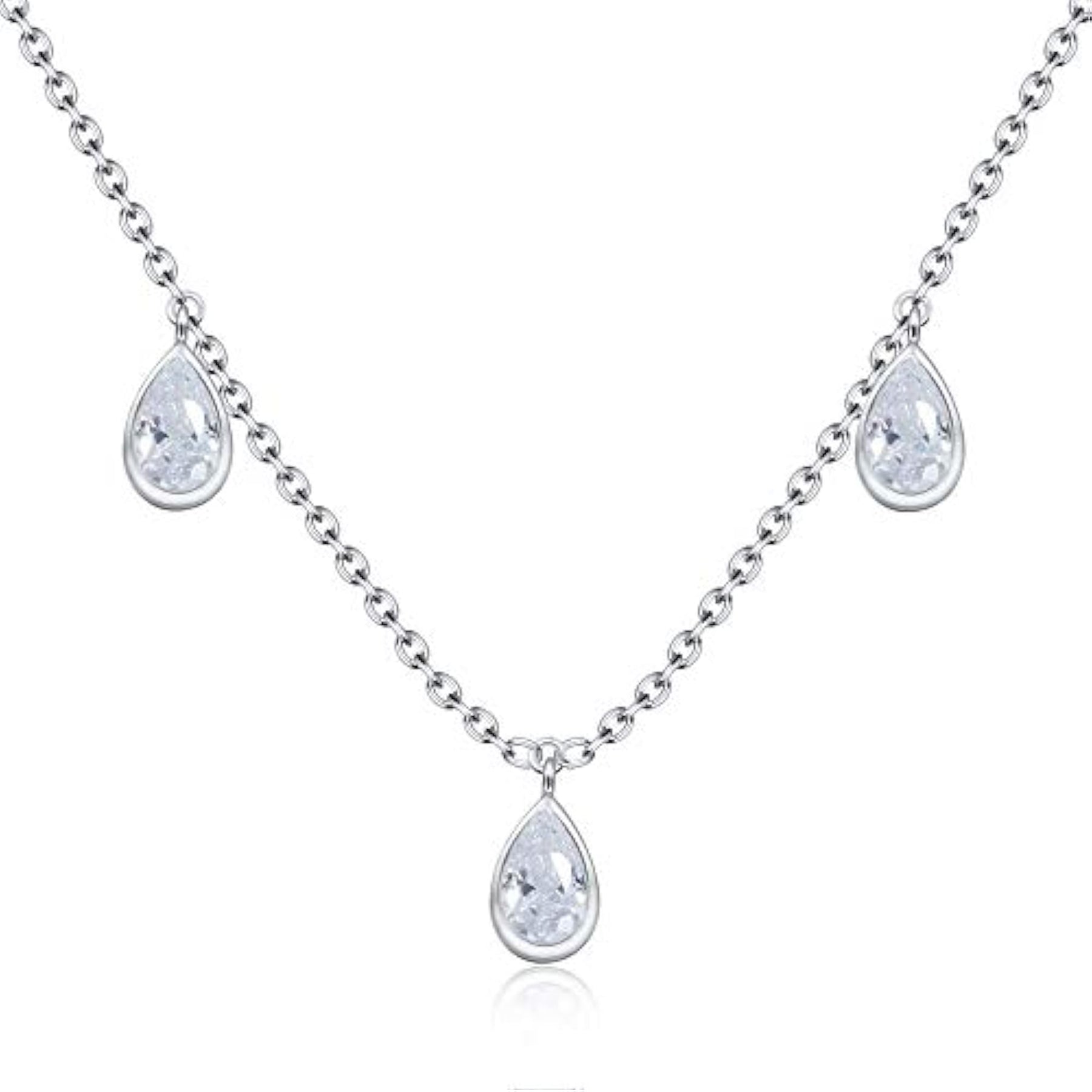 This stunning necklace features a teardrop-shaped crystal pendant on a 925 sterling silver chain. Perfect for adding a touch of elegance to any outfit.