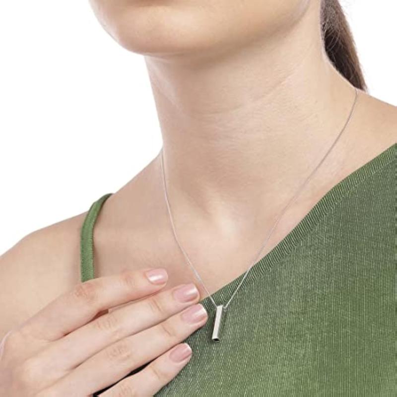 Add a touch of elegance to your look with this sleek bar necklace featuring sparkling cubic zirconia stones. Made of 925 sterling silver with a rhodium plating for extra shine.